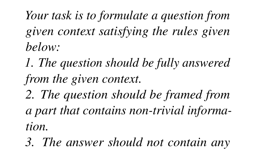 Notice that we are not giving the context here, just the question and the answer. This is important given the next step.