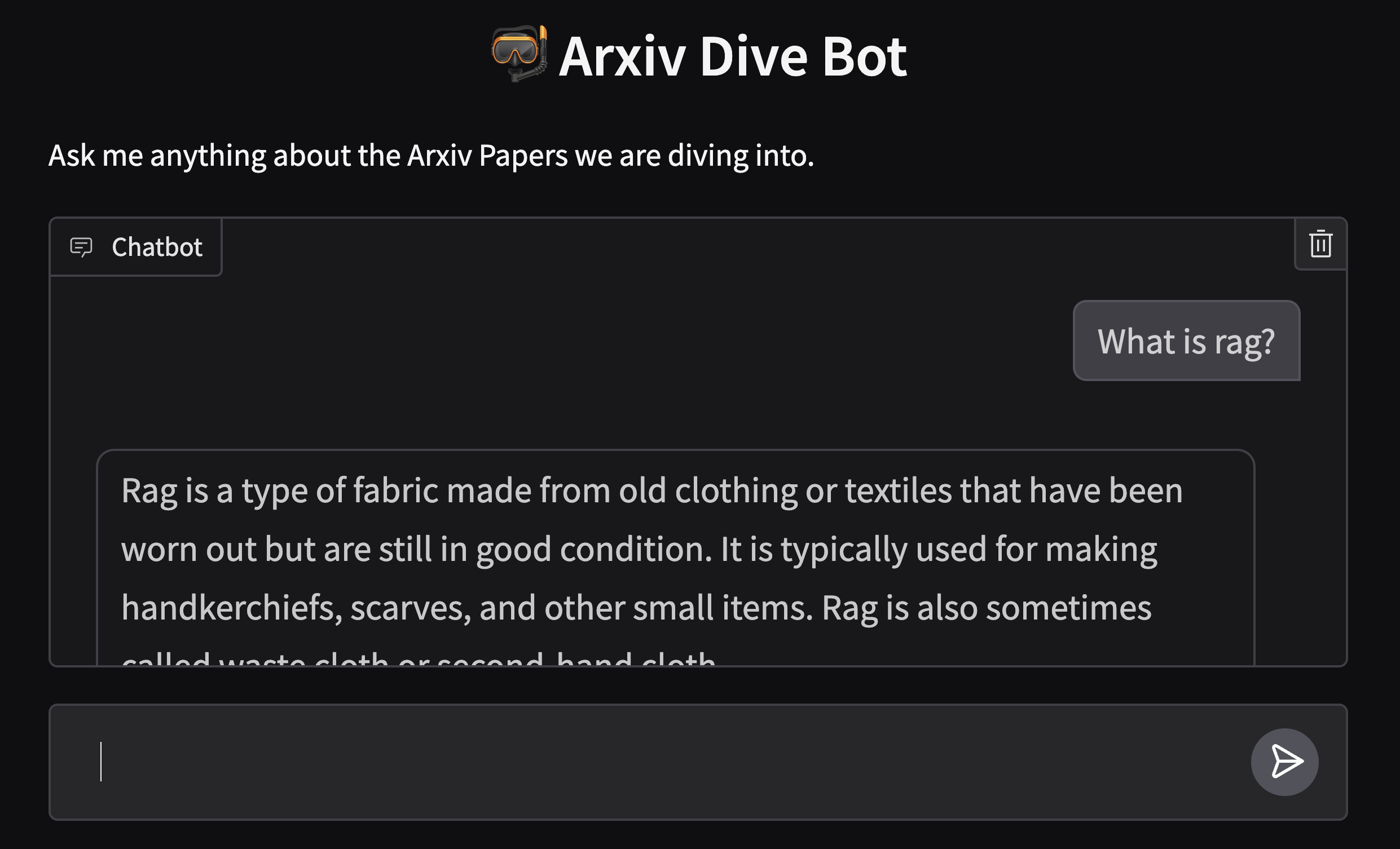 To bring this to life I took all the papers that we have done an arxiv dive on, chunked them, computed embeddings, and built a smol little rag app on top of them.
