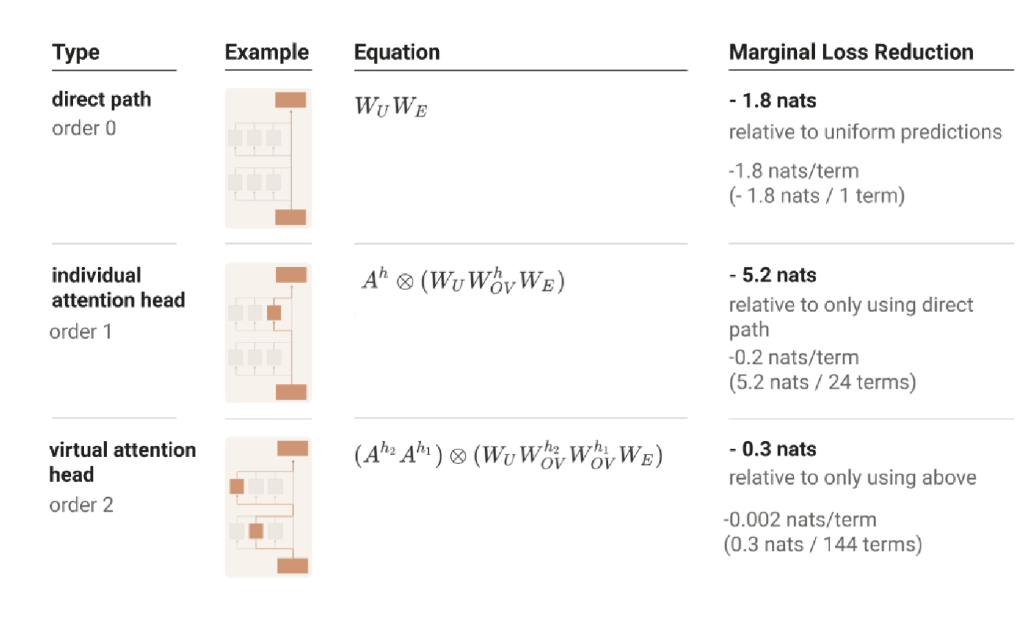 Virtual attention heads are the combinations of all the heads below it, and you start to lose direct attribution because of the combinatorial nature of it all.
