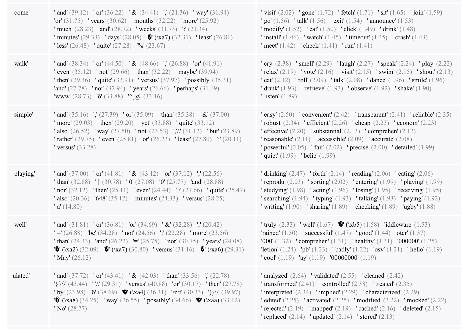 Also note we have been hand waving by saying âword vectorsâ, this is what tokens really look like in practice. Subwords and sequences.