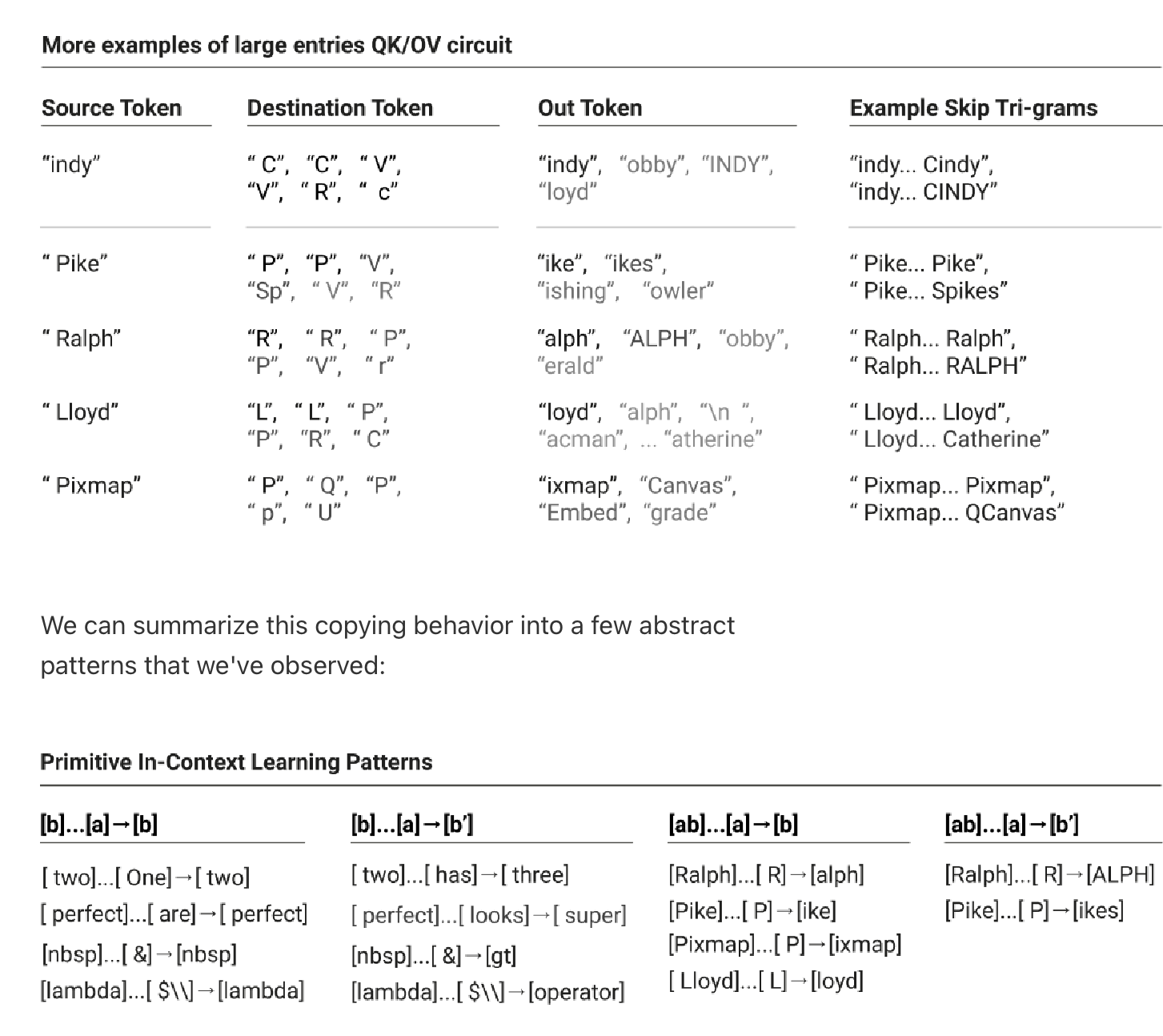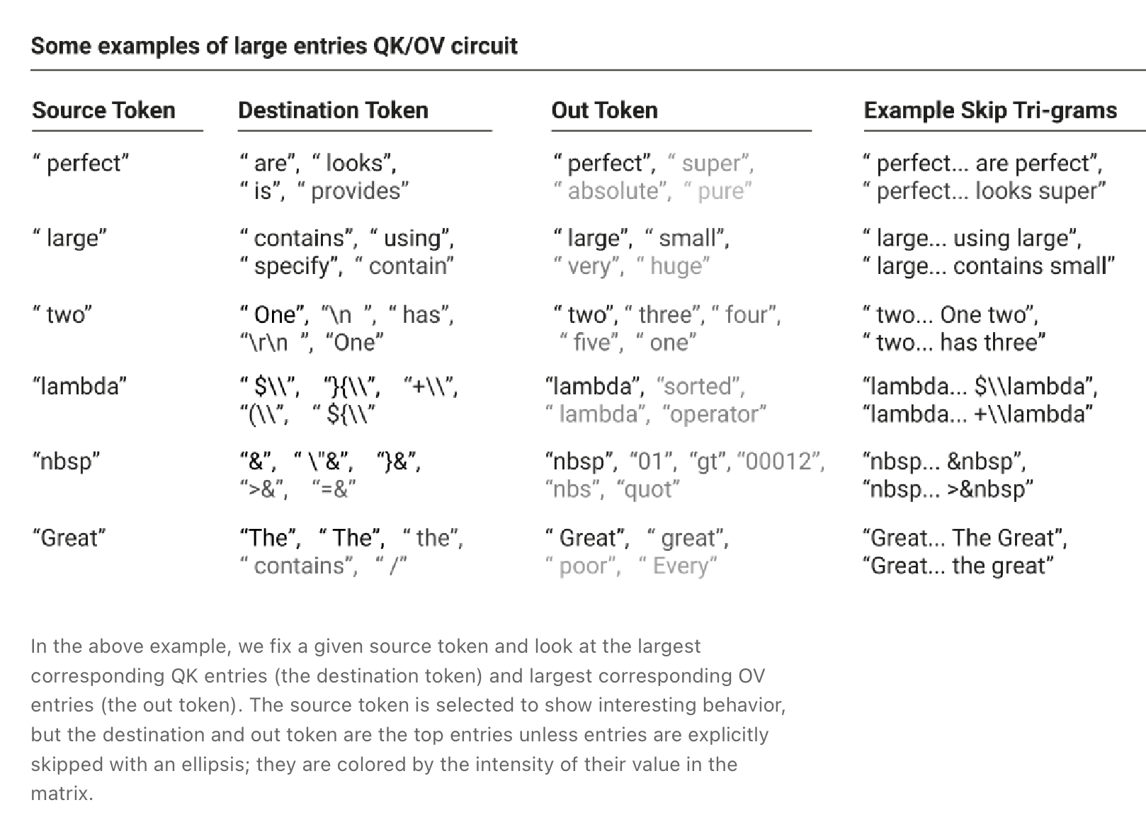 They show some interesting skip-trigrams and how the embeddings come out of the QK/OV circuits.