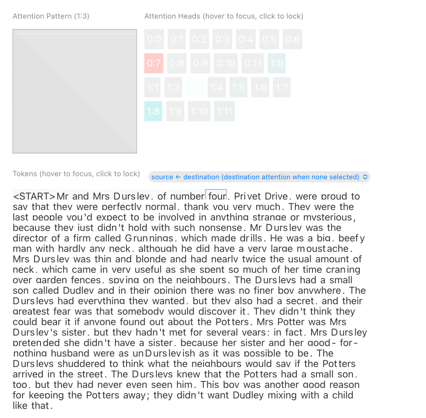 There is an interactive diagram of the value weighted attention patterns of âHarry Potter and the Philosopherâs Stoneâ