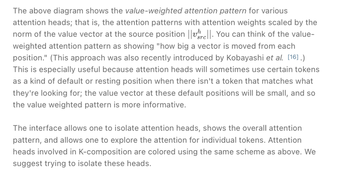 The âvalue-weighted attention patternâ is how big of a vector is moved from each position.