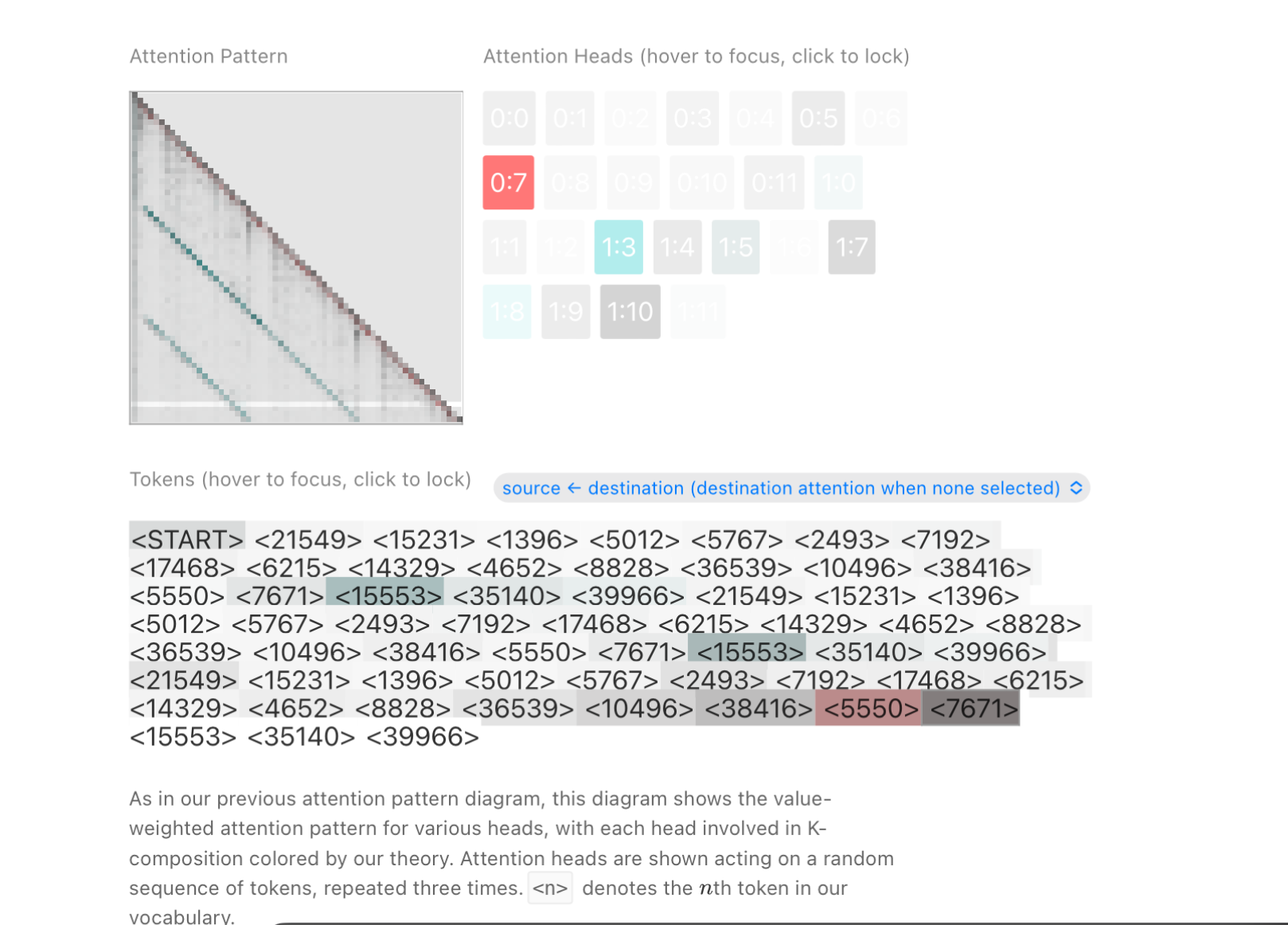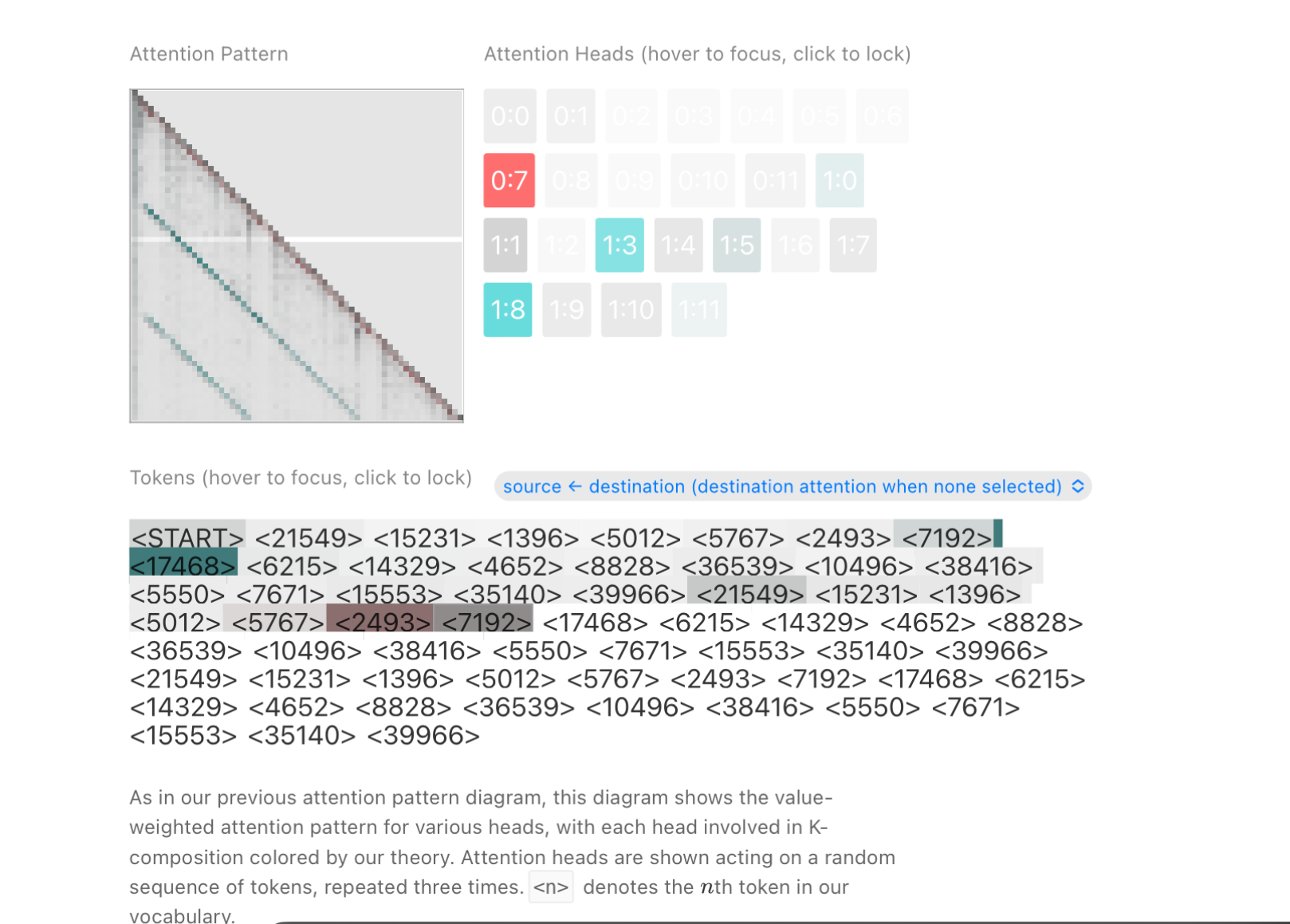 Below you can see I clicked on <7192> and it attended the previous example of that token in the sequence.