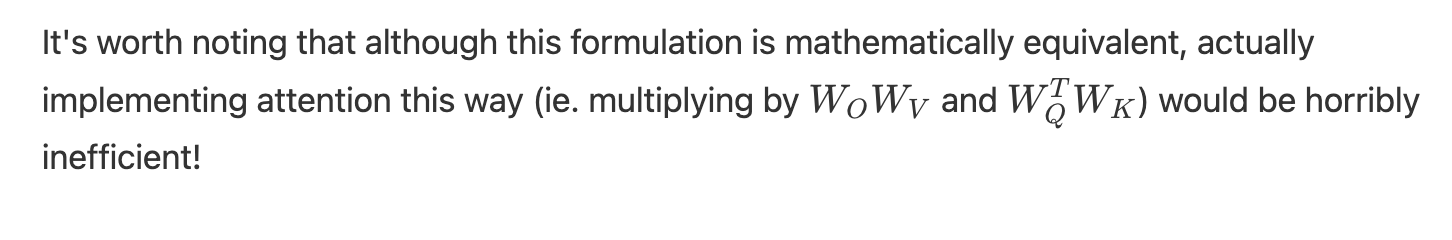 They like to think of attention layers as completely independent heads, which process information in parallel, and add their output back into the residual stream.