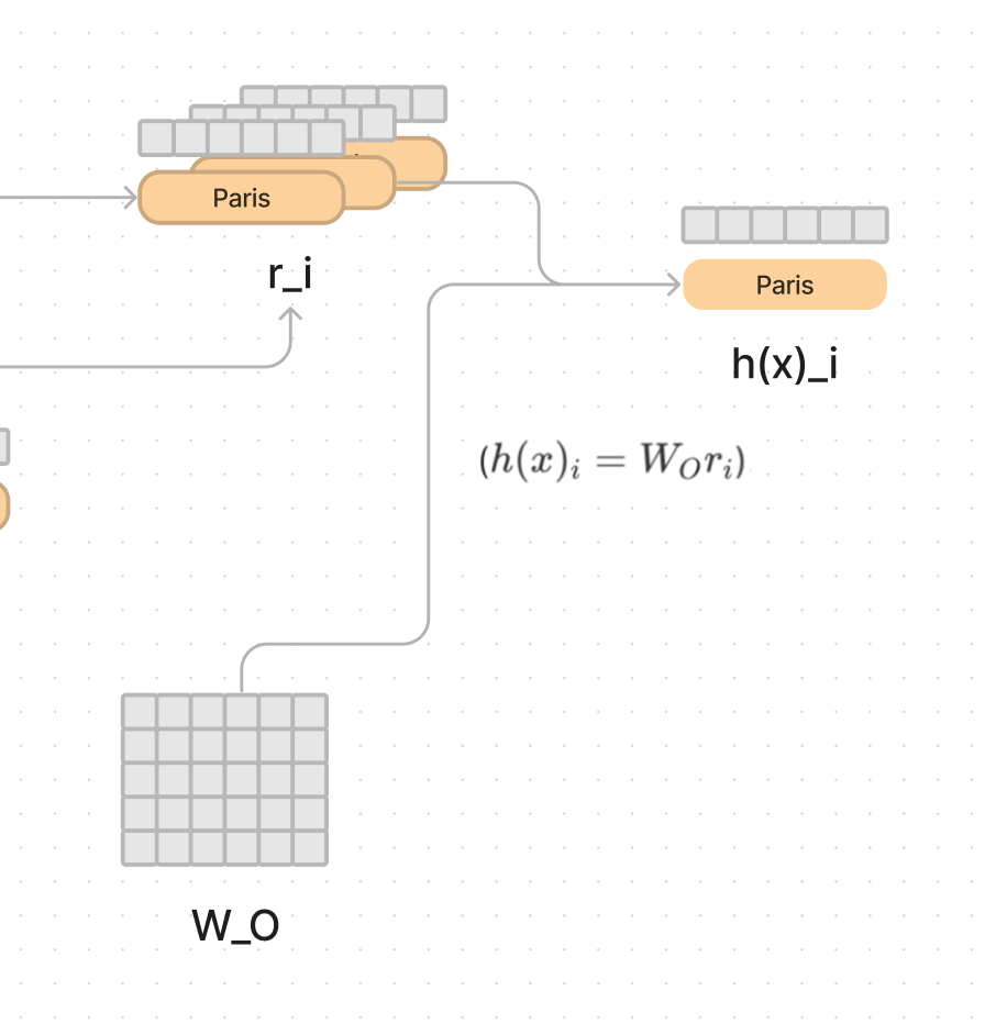 This step gives us another result vector r_i. Finally you can take r_i and multiply it by the W_O matrix and get the complete a final meaning of Paris in the context of the sentence.