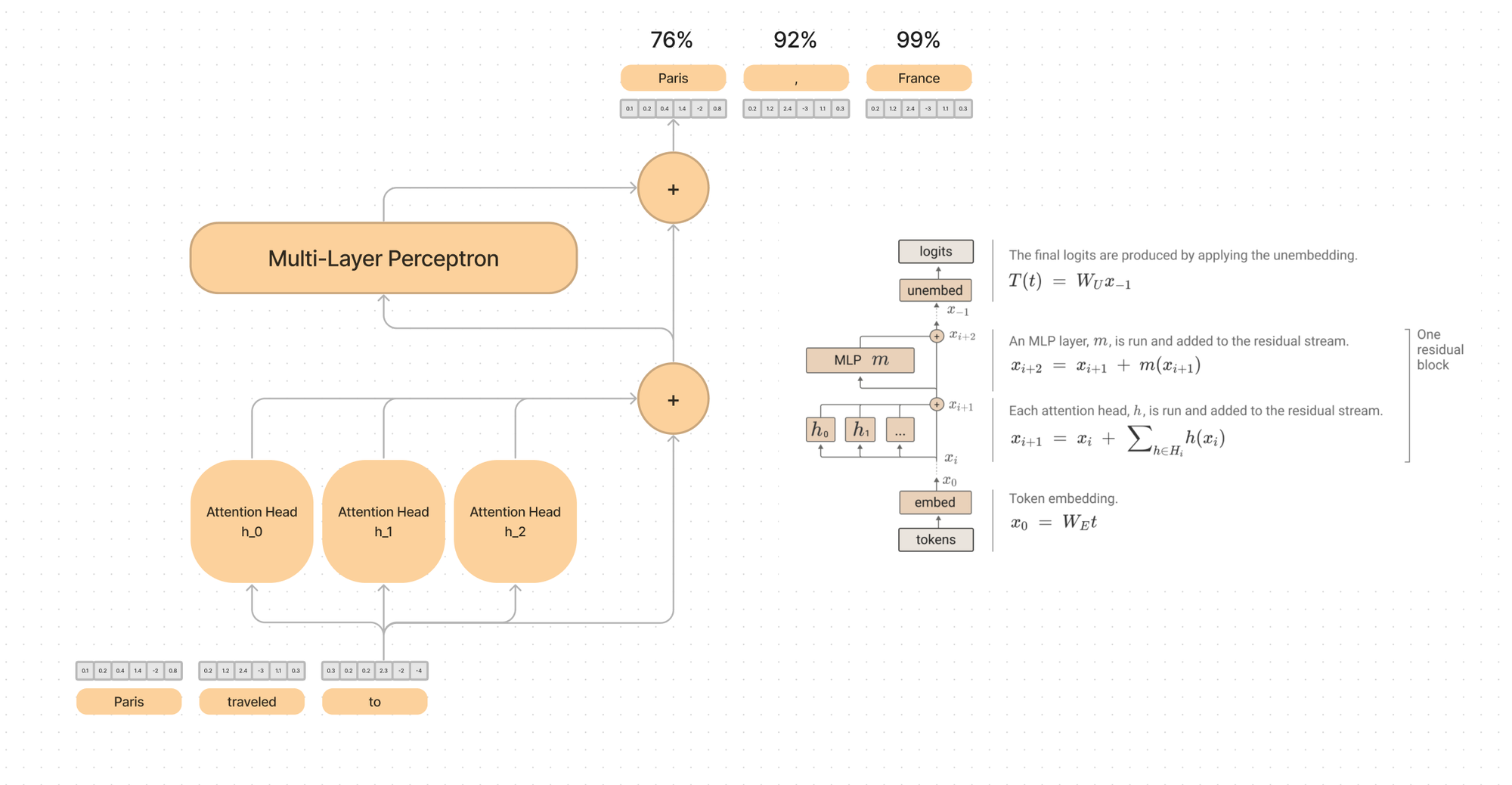 So for example, take the word embedding âParisâ, look at the other words in the sentence, modify the meaning to be more like âParis Hiltonâ than âParis, Franceâ, then write this new version of âParisâ back to the residual stream.