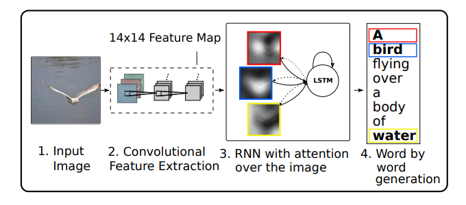 The âShow, Attend, Tellâ paper from 2015 applied Attention in combination with an RNN to generate descriptions of images.