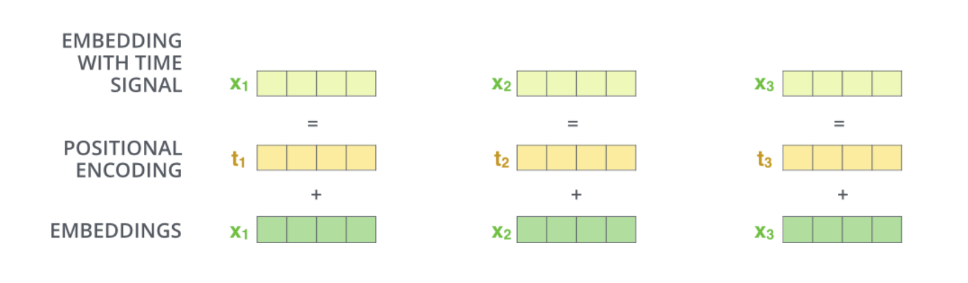 Concretely they take a positional encoding for each time step and add it to the word vector at each time step.