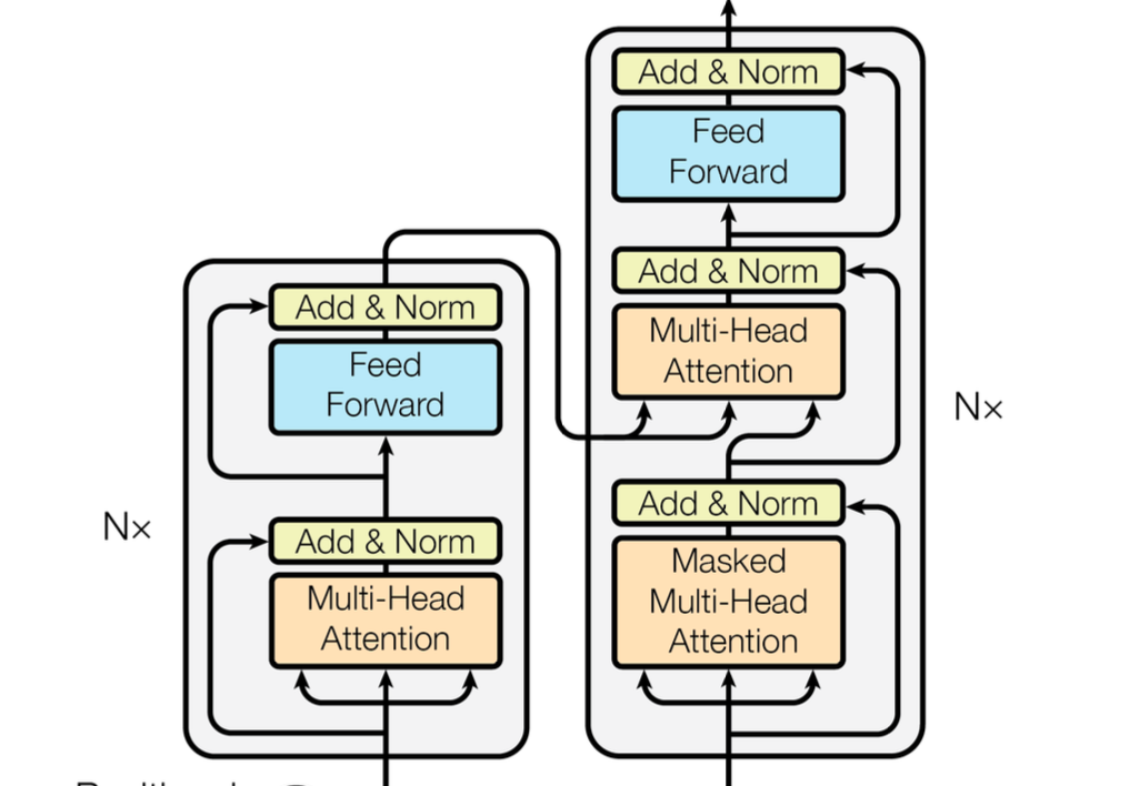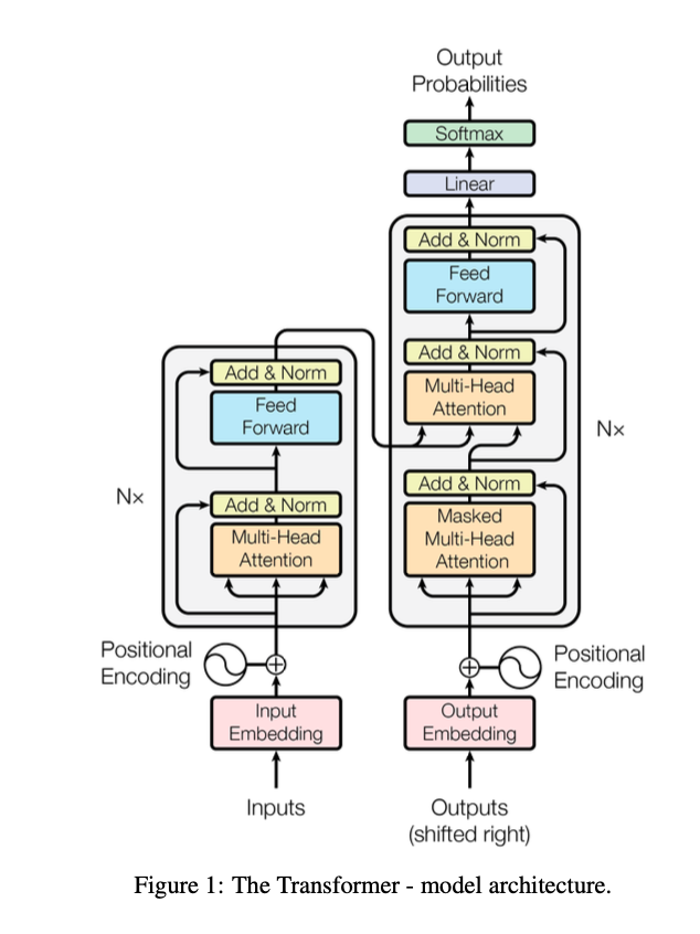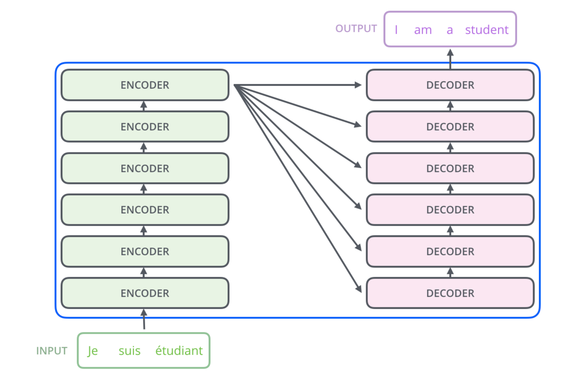 Then within each one of the layers of the encoder and the decoder there is a set of "Multi-Head Attention Mechanisms" and "Feed Forward" layers.