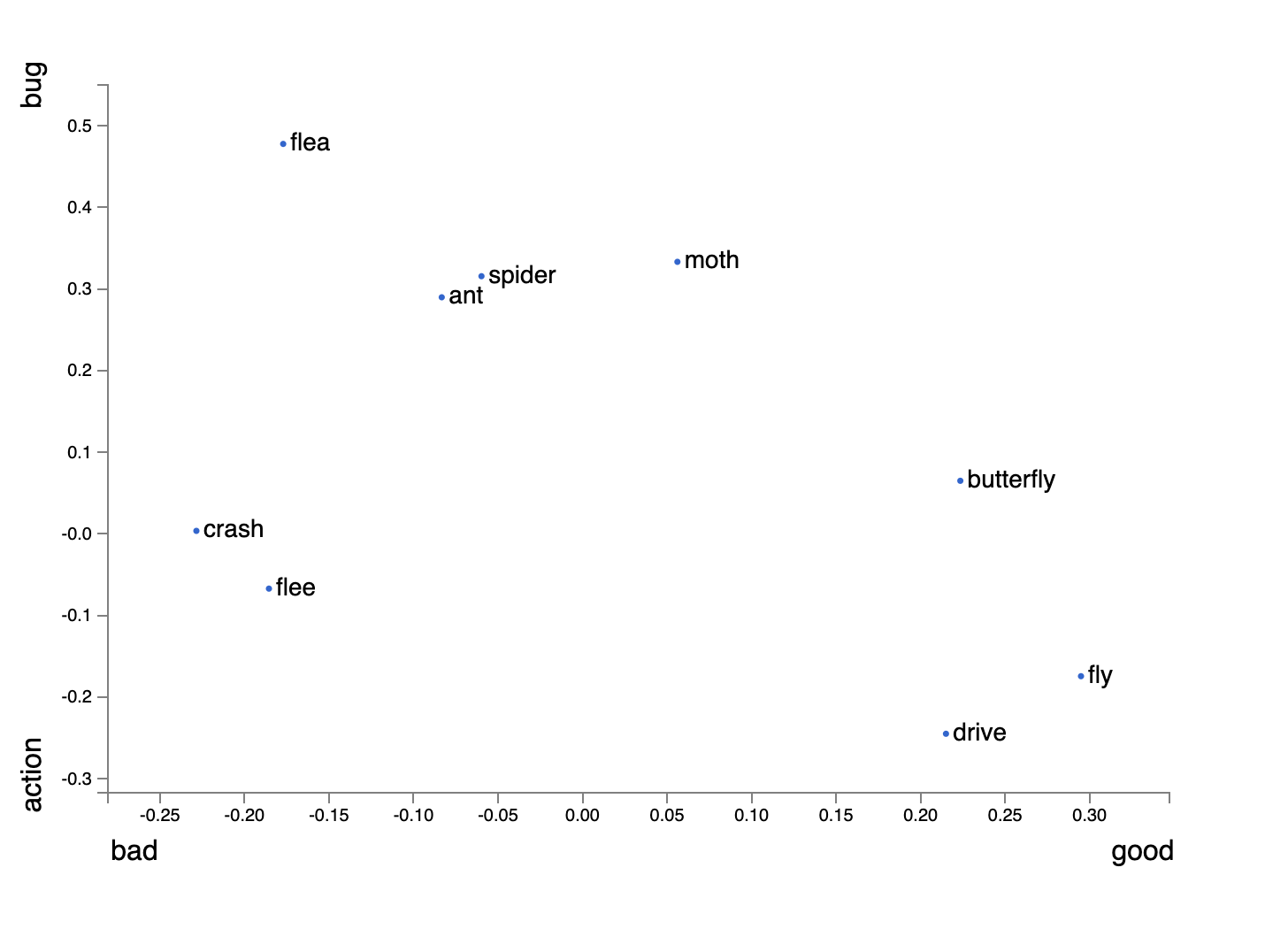 I was trying to think of what corpus might cause it to be closer to a bug representation, but the fact that âfliesâ âflyâ around, means it will probably always be closer to a verb than a noun, unless you look at the surrounding words in a sentence.