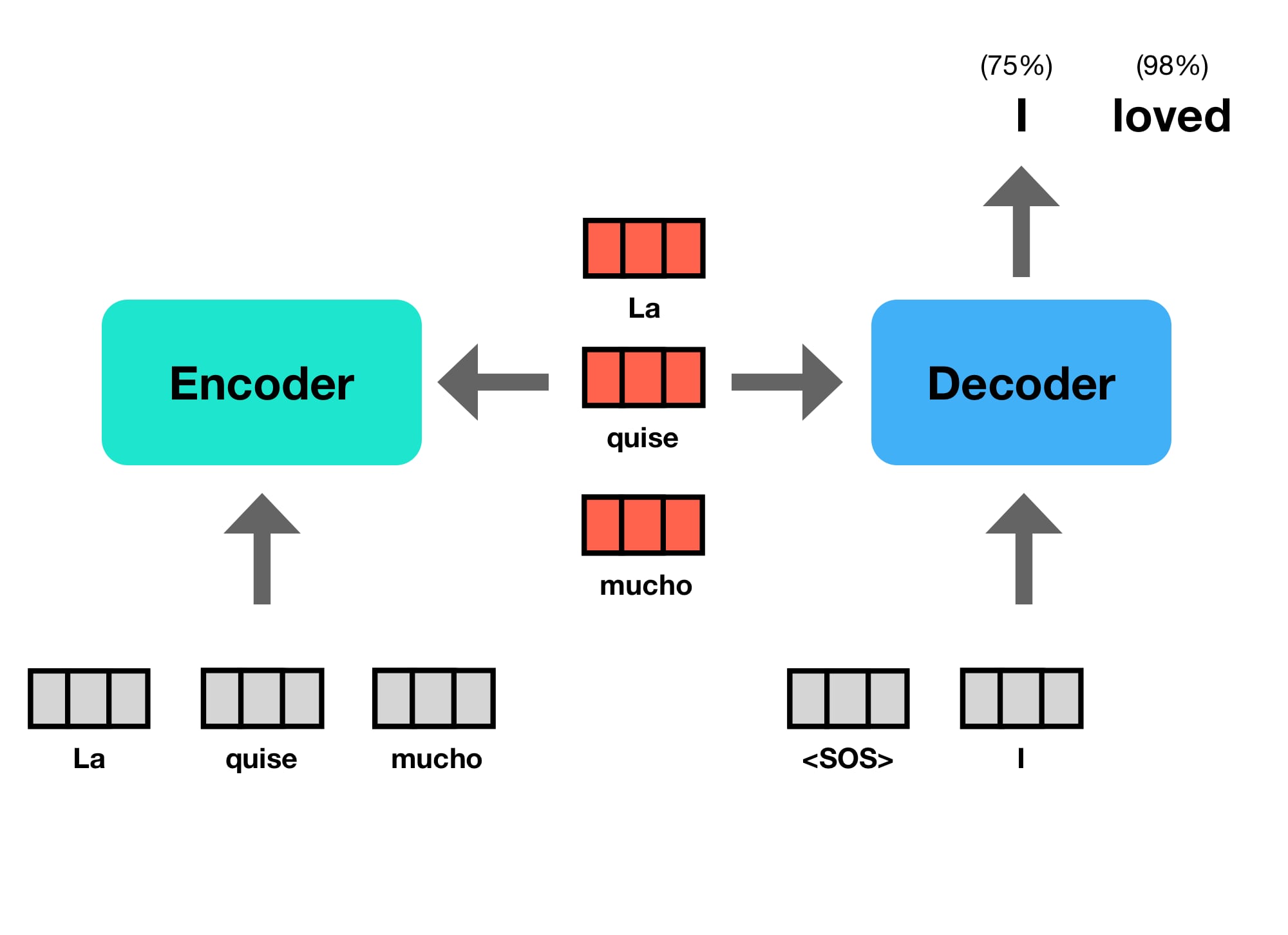 As you can see, after the model generates ("I") from ("<SOS>"), it then feeds ("<SOS>", "I") back into the model to generate ("I", "loved"), and so on and so forth.