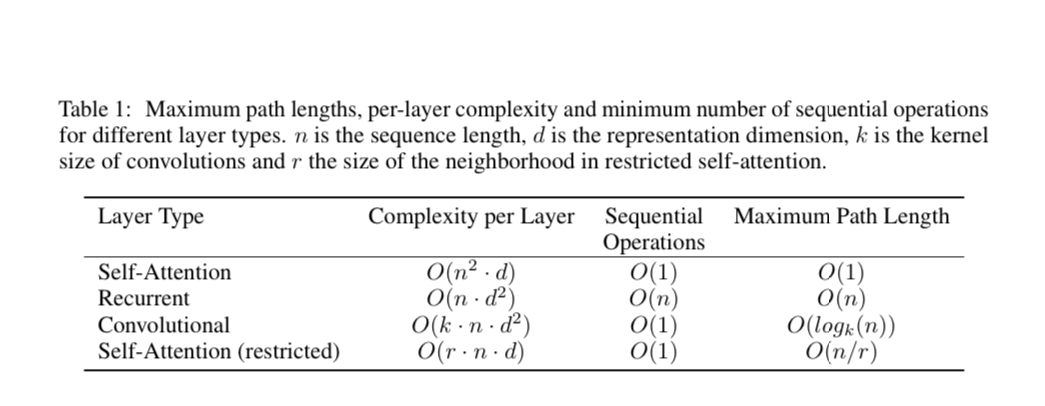 It does not do not rely on the sequence being processed sequentially like a recurrent network which has O(n) sequential operations.