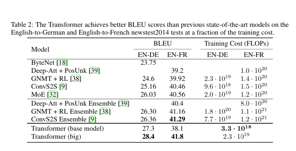 The transformer can be trained significantly faster than previous RNNs or CNNs for sequence to sequence tasks and achieved a new state of the art on machine translation.