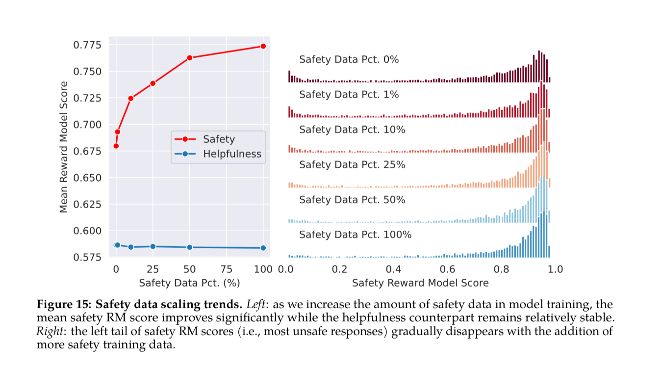 They show that adding more safety data improves the Reward Model safety score, while keeping helpfulness relatively stable.