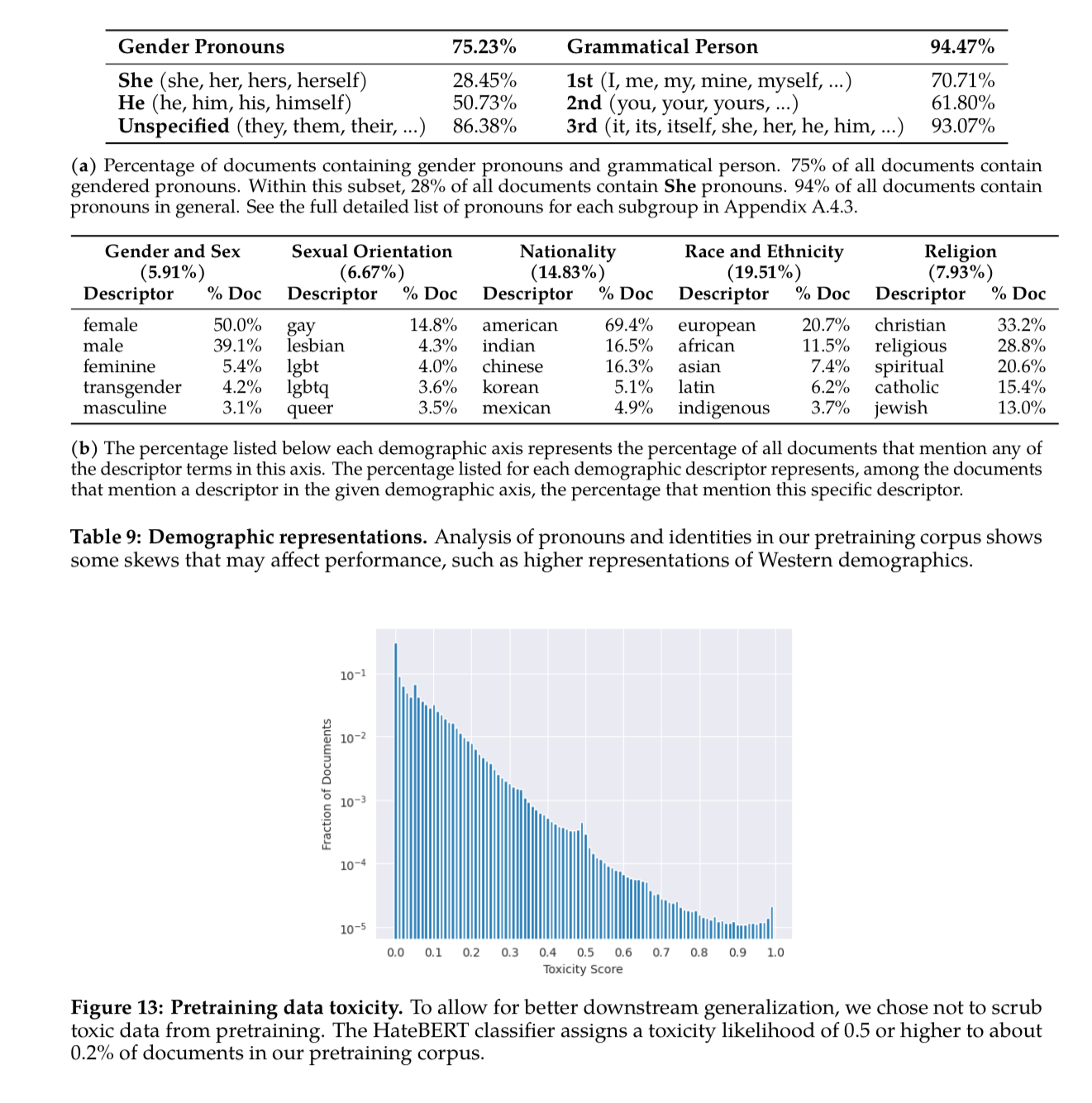 They did an analysis of the pre-training data to shed light on root causes of potential downstream issues and biases.