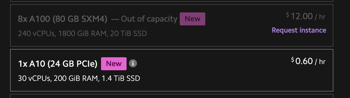 - You can't even rent a single A100 from LambdaLabs, but if you wanted a machine with 8 of them, it would be $12 an hour, so back of the envelope math is 3,311,616*12/8 = $5 million dollars and 3,311,616/8/24/365 = 47 years to run on an imaginary Lambda machine of 8 GPUs