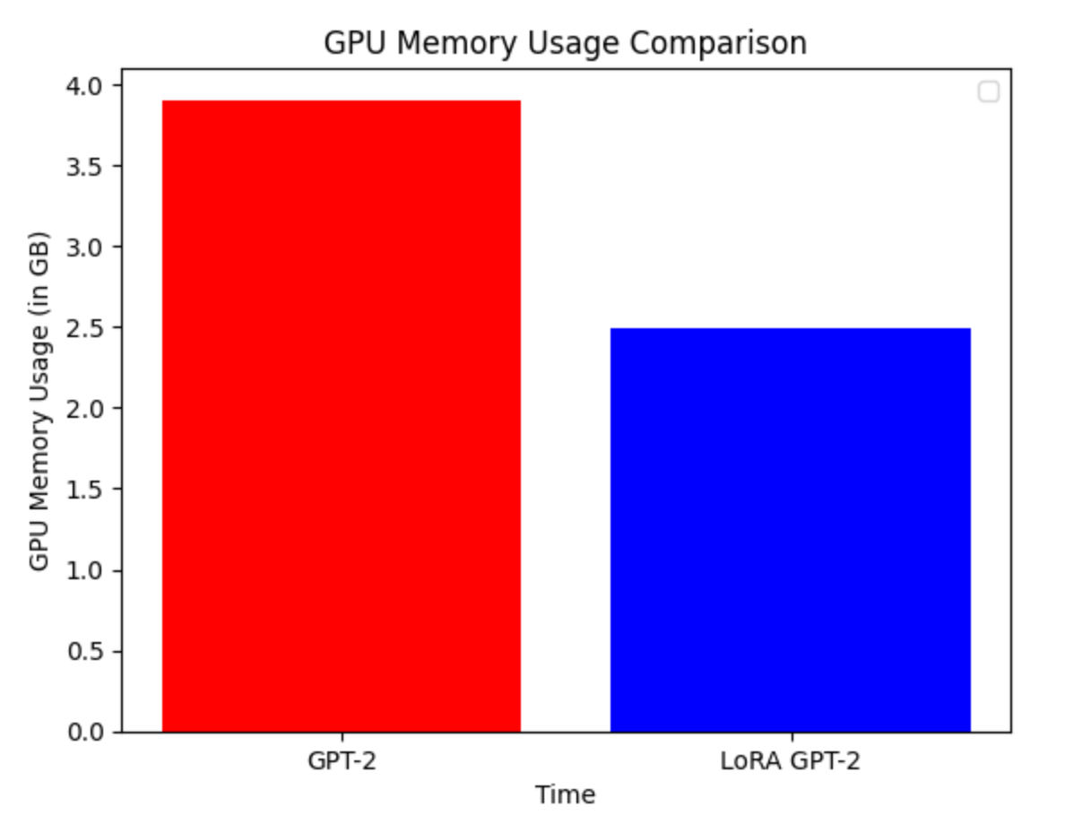 The main takeaway: LoRA reduces the number of trainable parameters, which results in a decrease in training time and GPU memory usage, while maintaining the quality of the outputs.