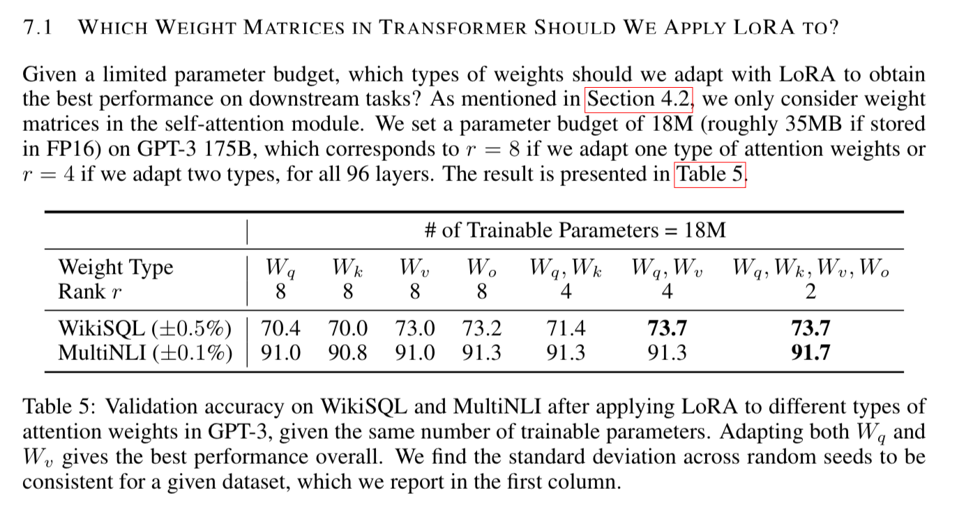 In this case, they apply LoRA to the Transformer architecture. So the following section is helpful to know which variables mean what.