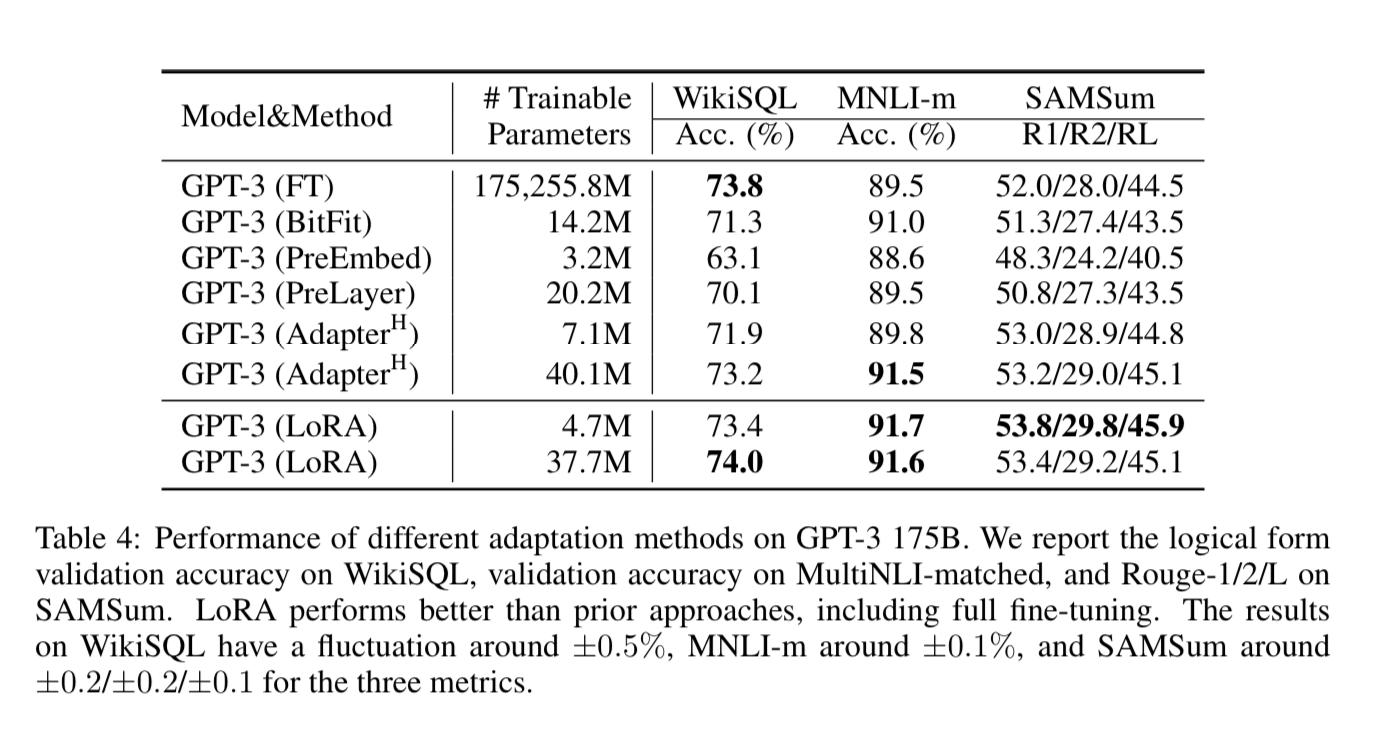 We won’t get into all the adapters they compared against, but you can see LoRA is competitive if not better than many of them when used on RoBERTa