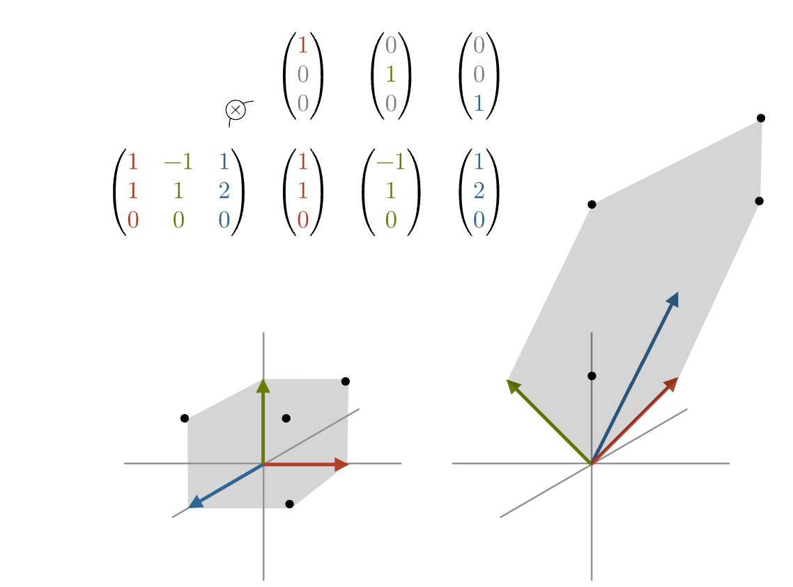5 3 9 7You can see the first two rows are just multiples of each other, so they will continue to point you in the same direction. But the third row takes us in a completely different direction.