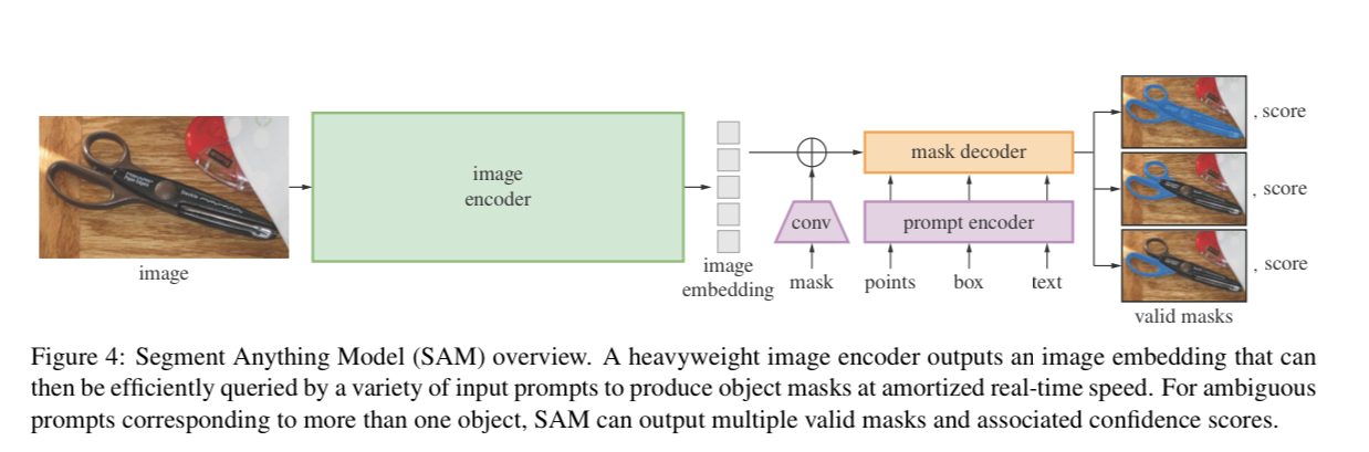 - A mask decoder that takes 1 & 2 as inputs and generates a segmentation mask.