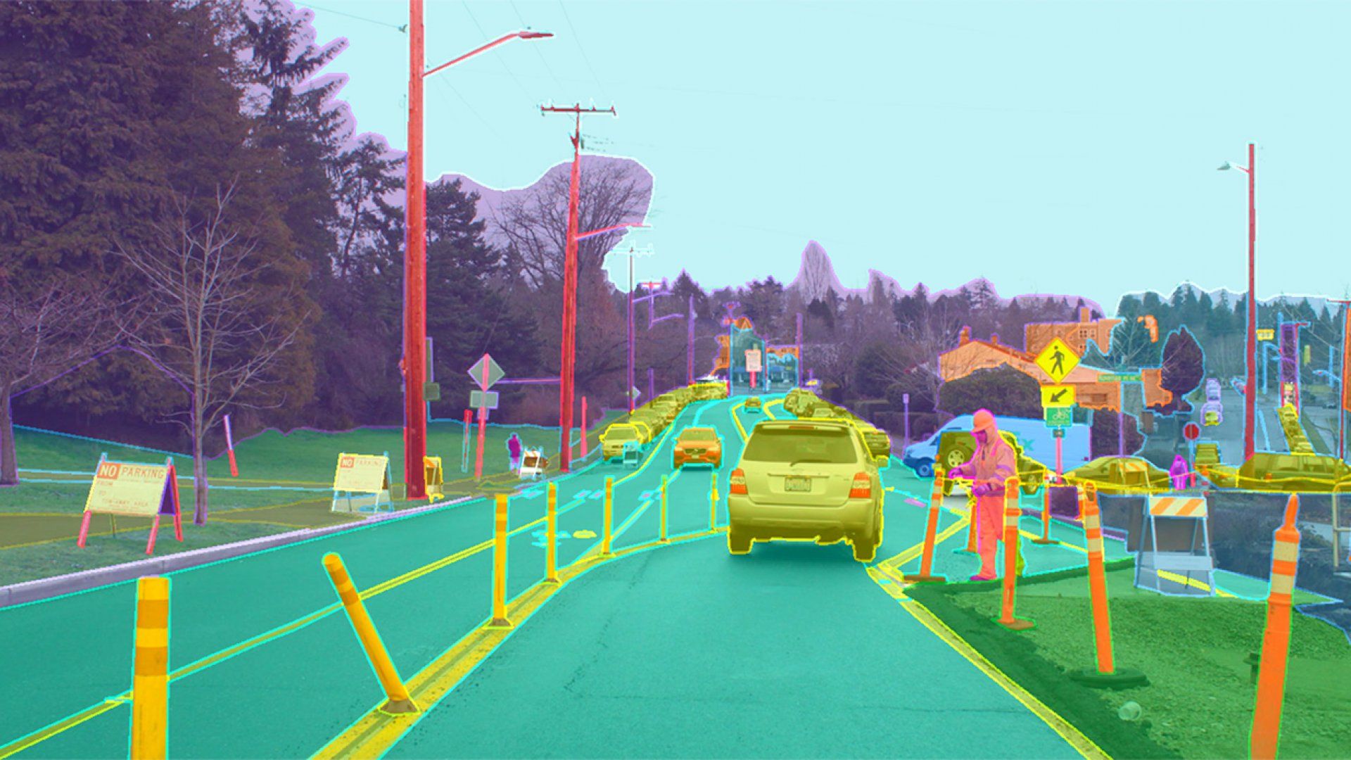 Knowing where the road vs sidewalk other cars vs trees are in each frame of a video.