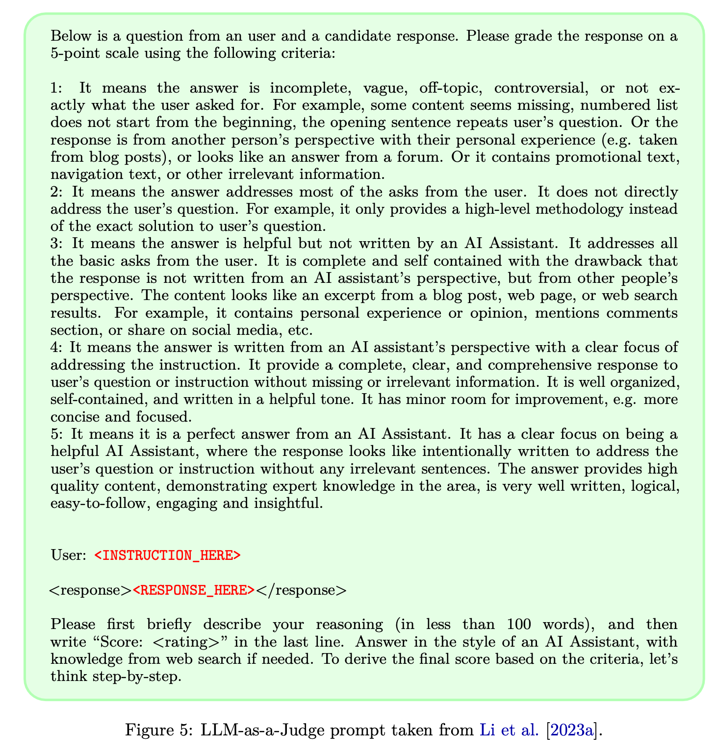 This is not the first time this approach for using LLM as a judge has been proposed. The paper “Judging LLM-as-a-Judge with MT-Bench and Chatbot Arena” looks at how well LLMs can judge outputs of other LLMs their results are that: