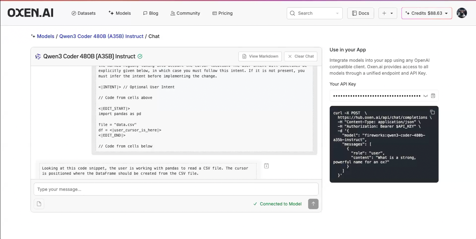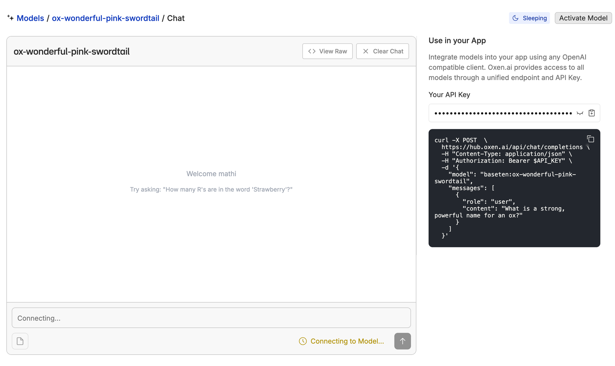 When the training completes, you can deploy the model to an OpenAI compatible inference endpoint or chat with it directly in the UI.