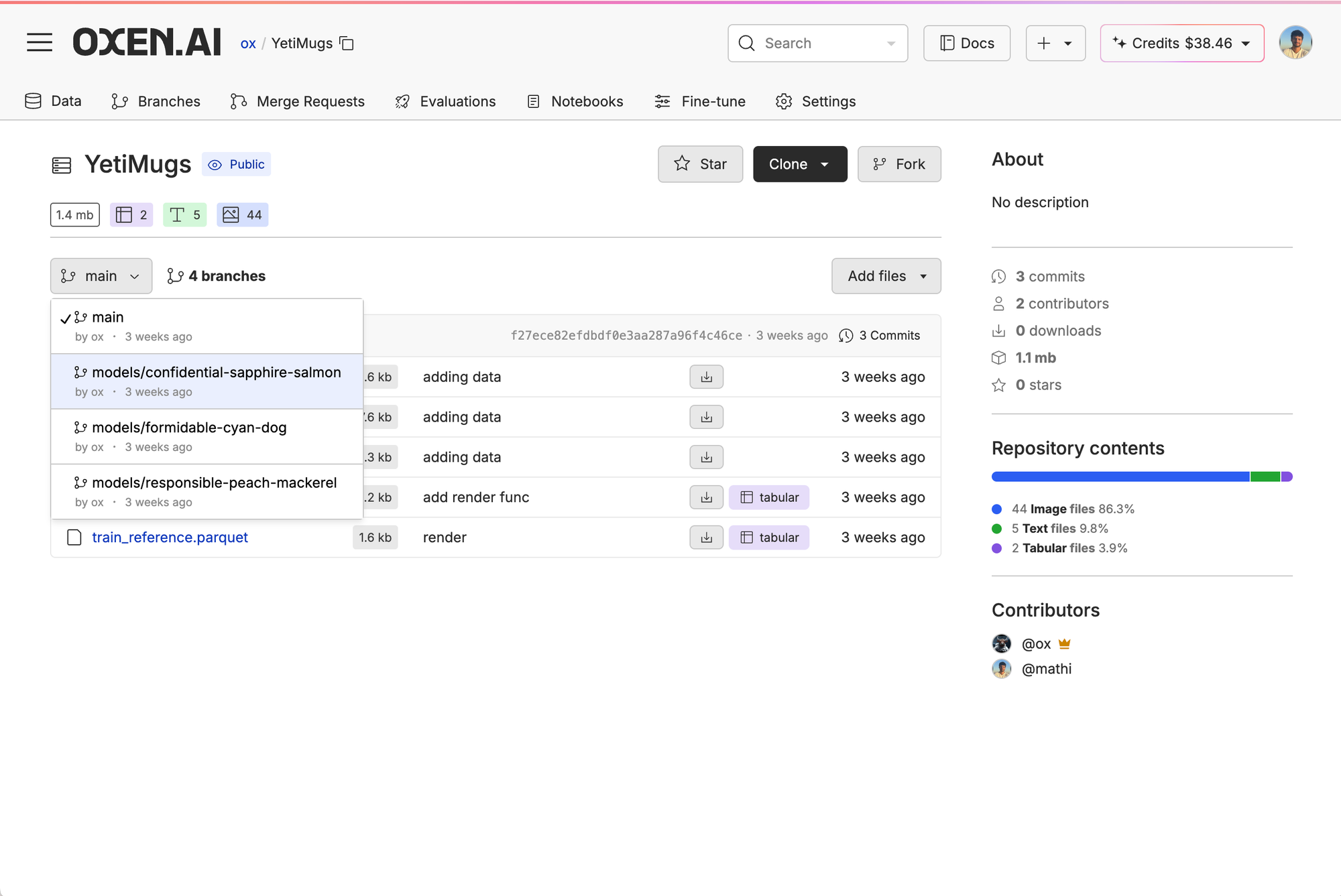 Every time you finish a fine-tune, we automatically store the model weights with a snapshot of the data you used to train it in a new repo branch. That way, you can easily track which experiment trained which model or download and own your weights. All you have to do is go back to your repo, click branches, and choose the branch with the fine-tuned model name generated automatically.
