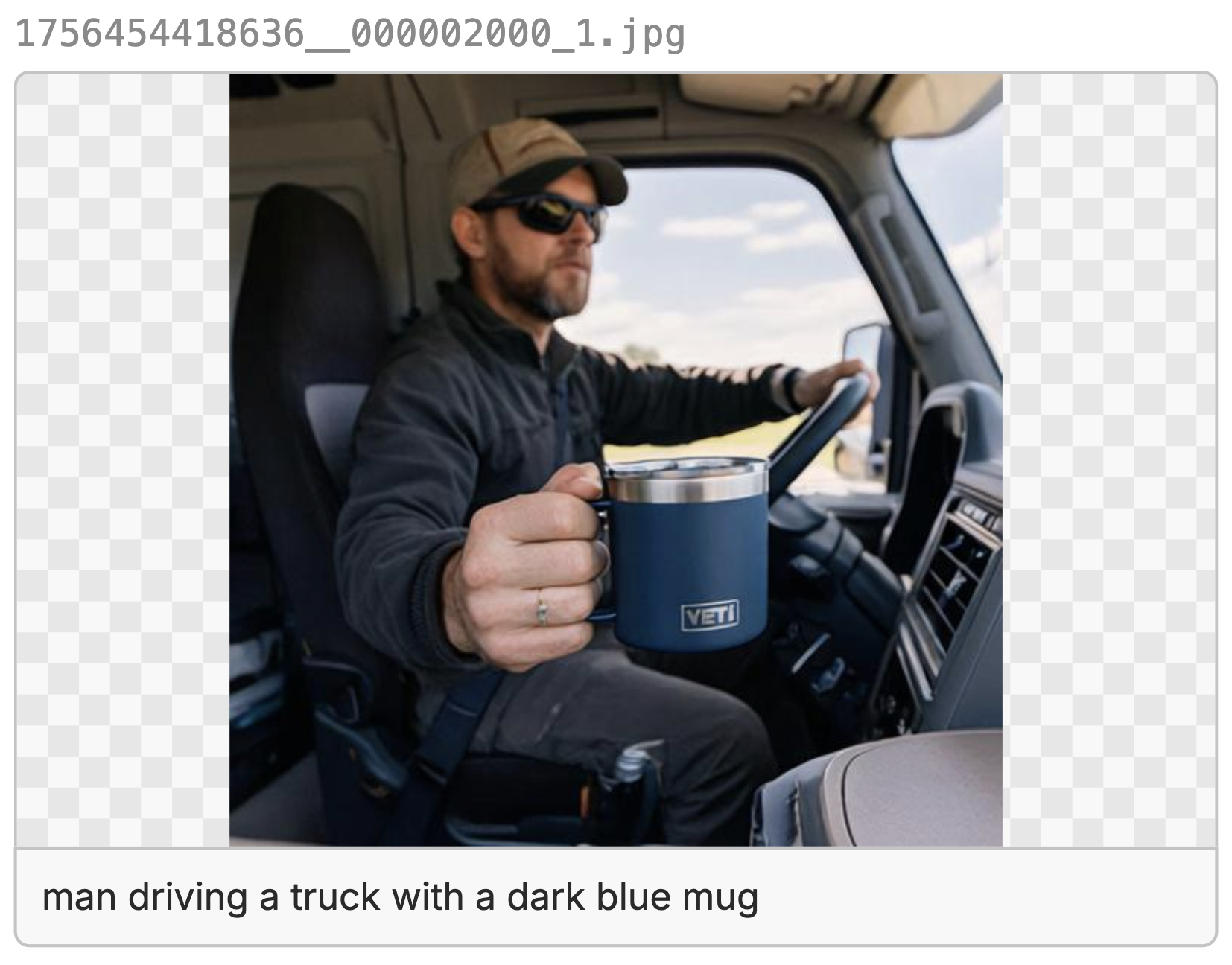 Off the bat, we can tell the people in the FLUX and Qwen gens look very AI-generated, even though they didn't do a horrible job with the yeti mug itself. They are just off on little details, like for FLUX, the Yeti logo is backwards, for Qwen the mug looks great, but is blocked by the driver's hands. Mainly, the people look like AI slop and not production ready at all.
