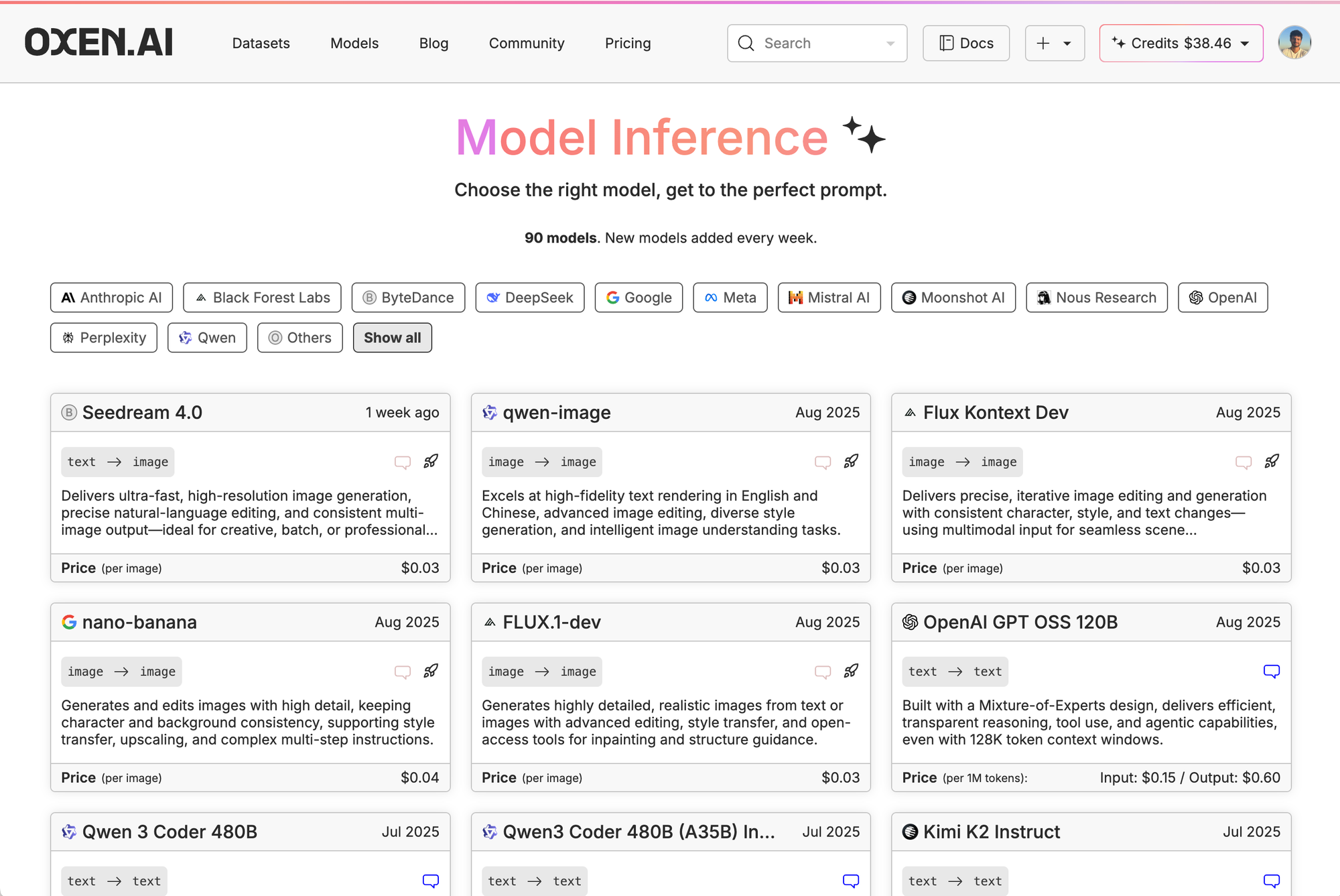 So to test the different models, we went to Oxen.ai's model page: