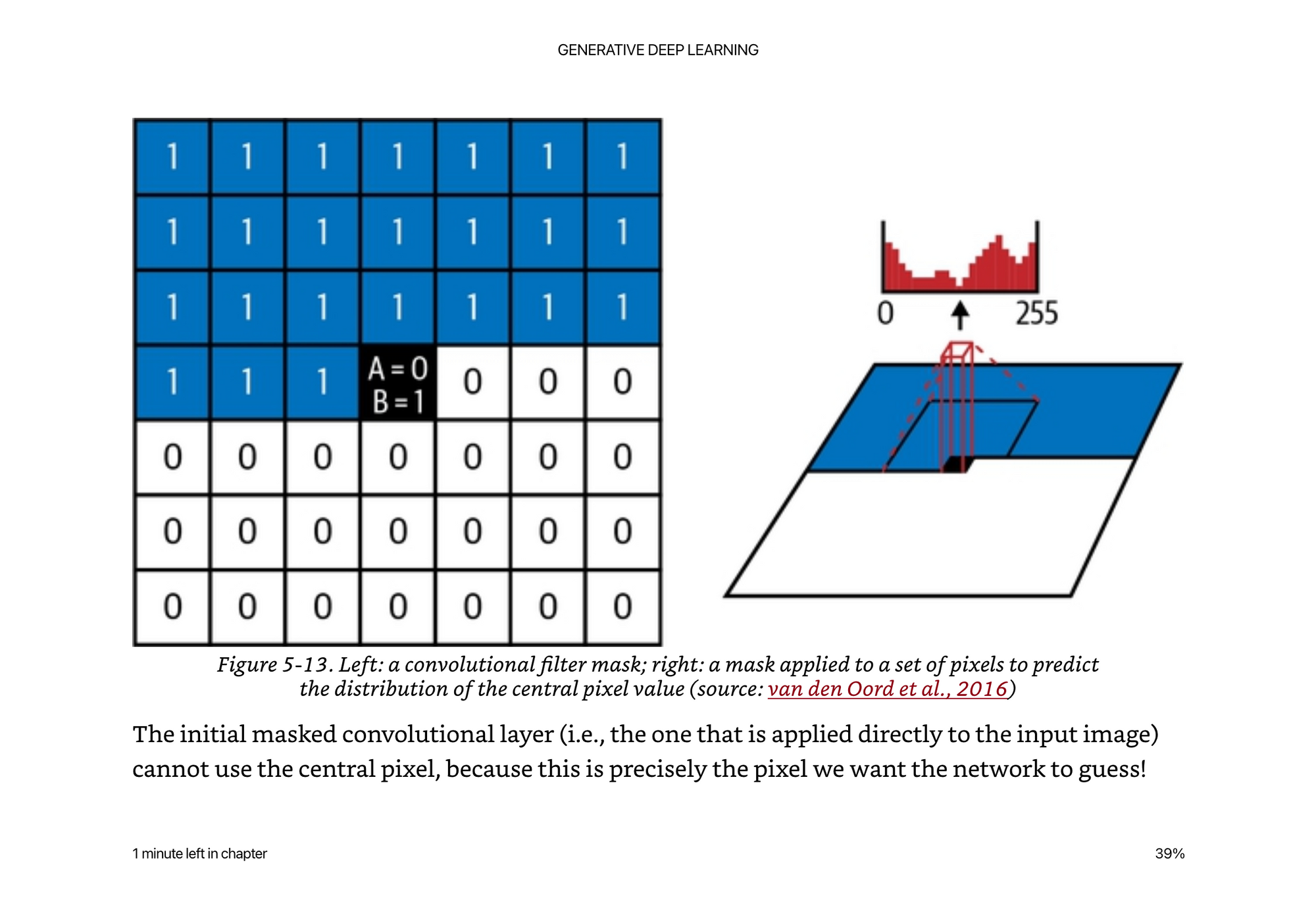 The idea behind a masked convolution is simply that we cannot use regular convolutions because they have no sense of âsequence orderâ of the pixels in the image. We can define order from top left to bottom right by organizing the filter mask as such.