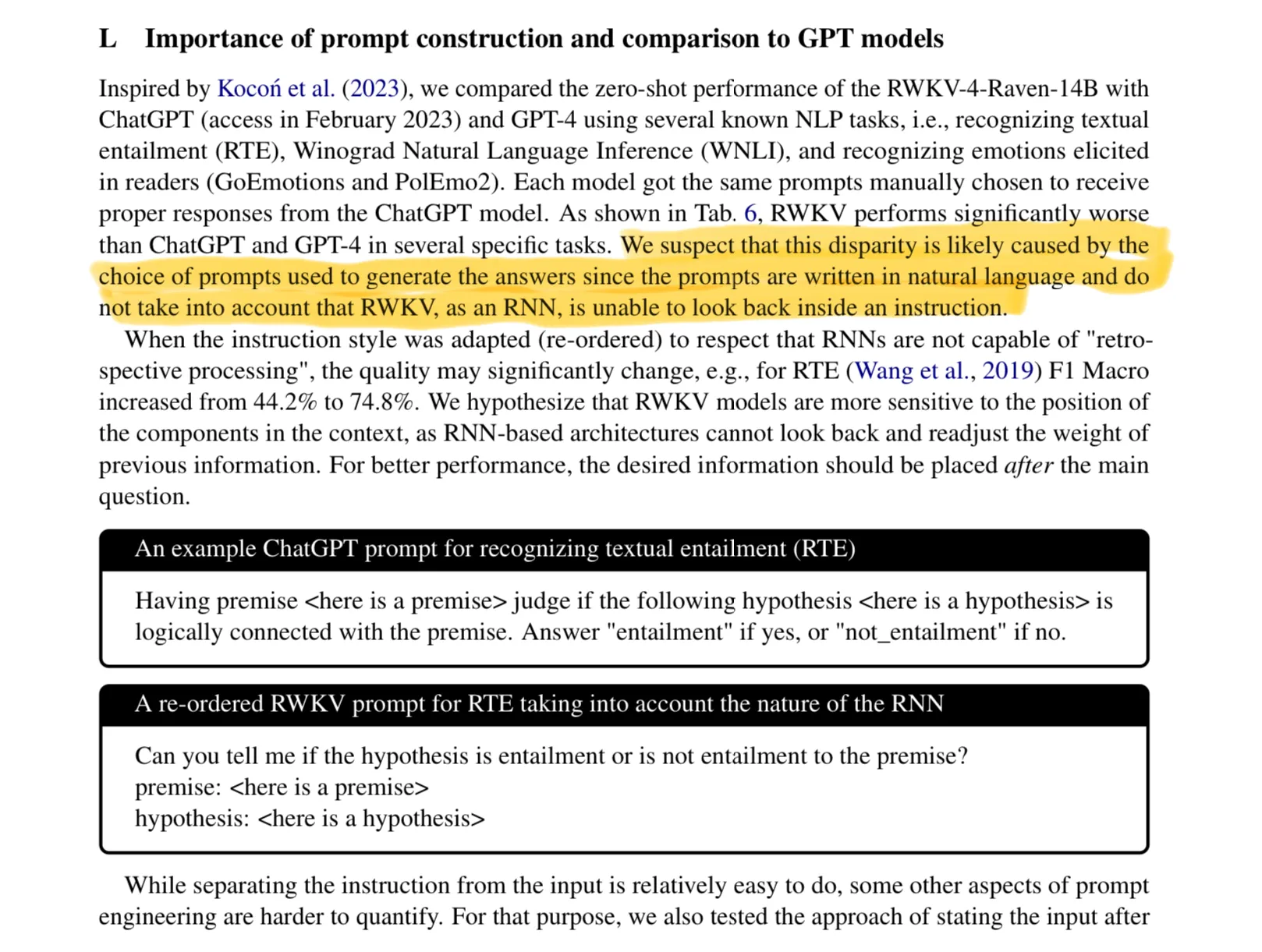 They do note that RNNâs cannot attend to prompts as well as transformers in the original paper.