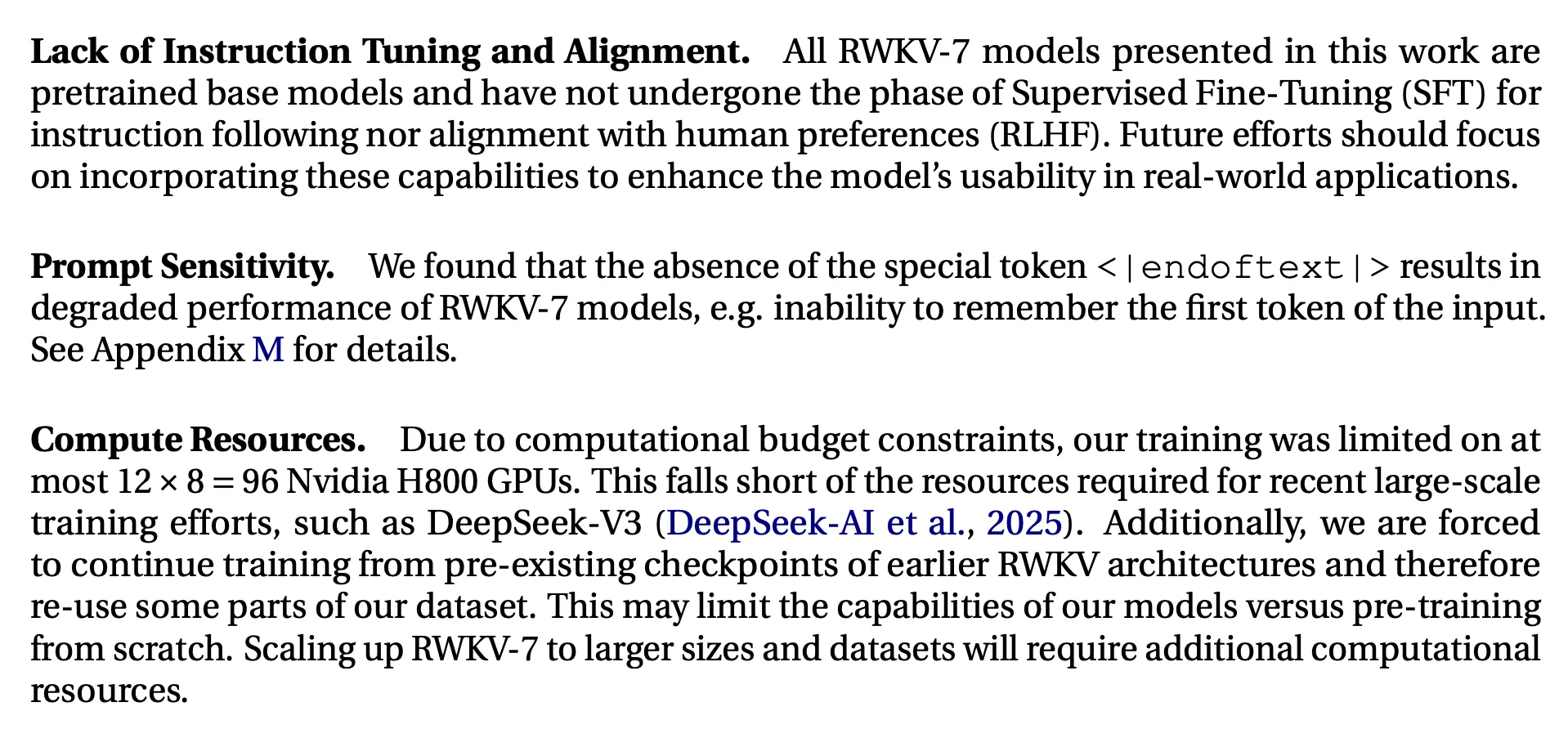They continue the bird theme with RWKV-5 âEagleâ đŠ , RWKV-6 âFinchâ đŠ, and RWKV-7 âGooseâ đȘż.