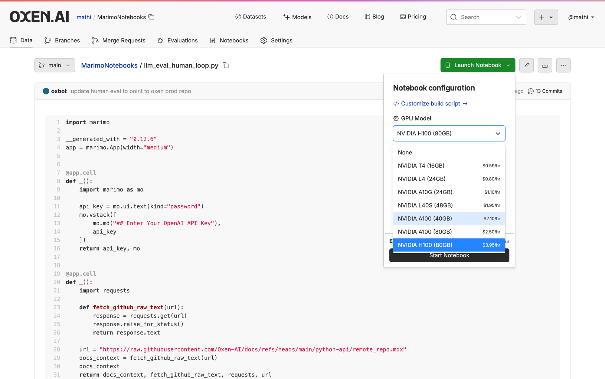 Want to build your own human-in-the-loop evals? Join engineers at leading universities and companies such as Stanford, Disney, and Google and use Oxen.ai's notebooks today.