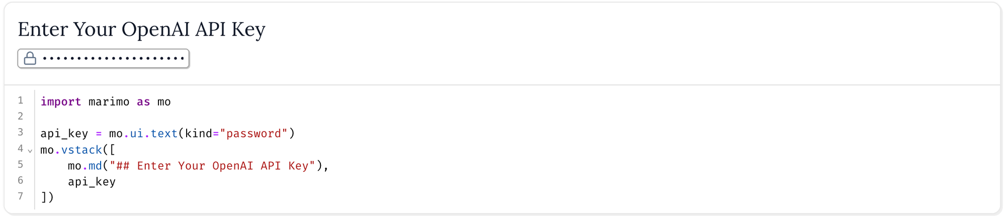 To start, make a cell at the top of the notebook that allows the user to put in their own OpenAI API_KEY.