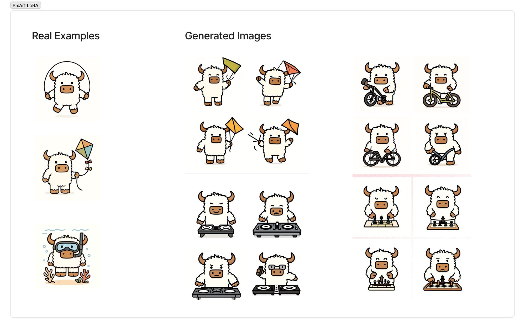 The conclusion we came to is that FLUX is really good for photorealistic images, but may take some additional hyper parameter tuning to work well for simple vector graphics. PixArt nailed it right out of the gate, and was much faster to train since it is a smaller model.