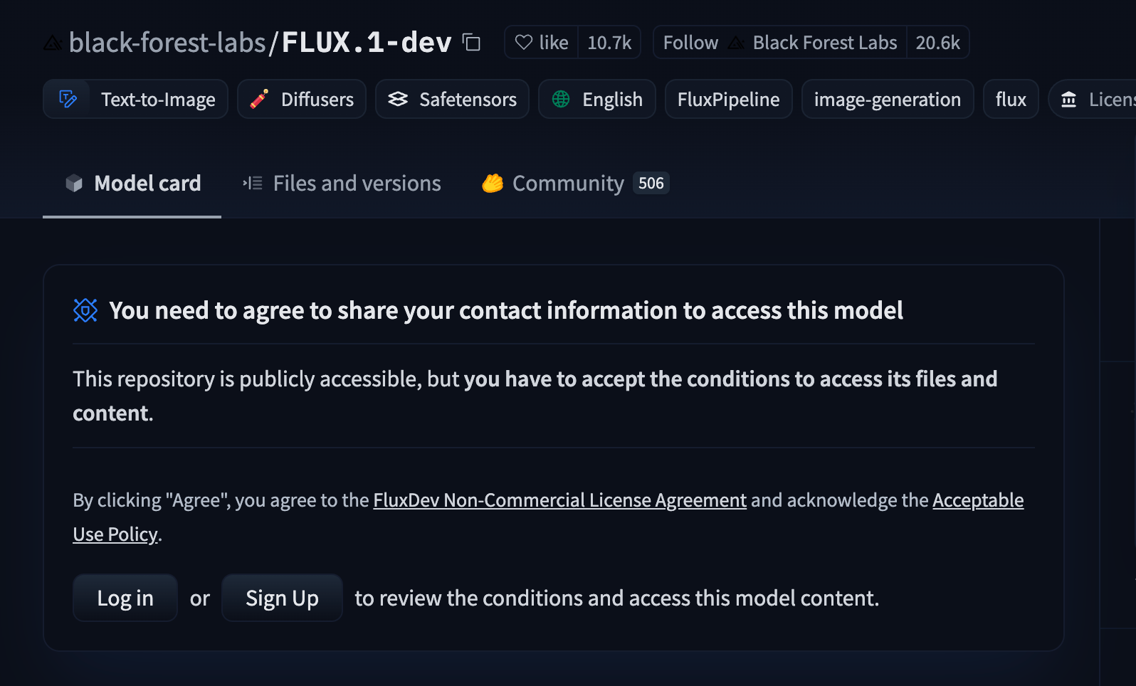 All of the initial model weights will be downloaded from black-forest-labs/FLUX.1-dev Hugging Face repository. You will need to accept the terms and conditions to access the files.