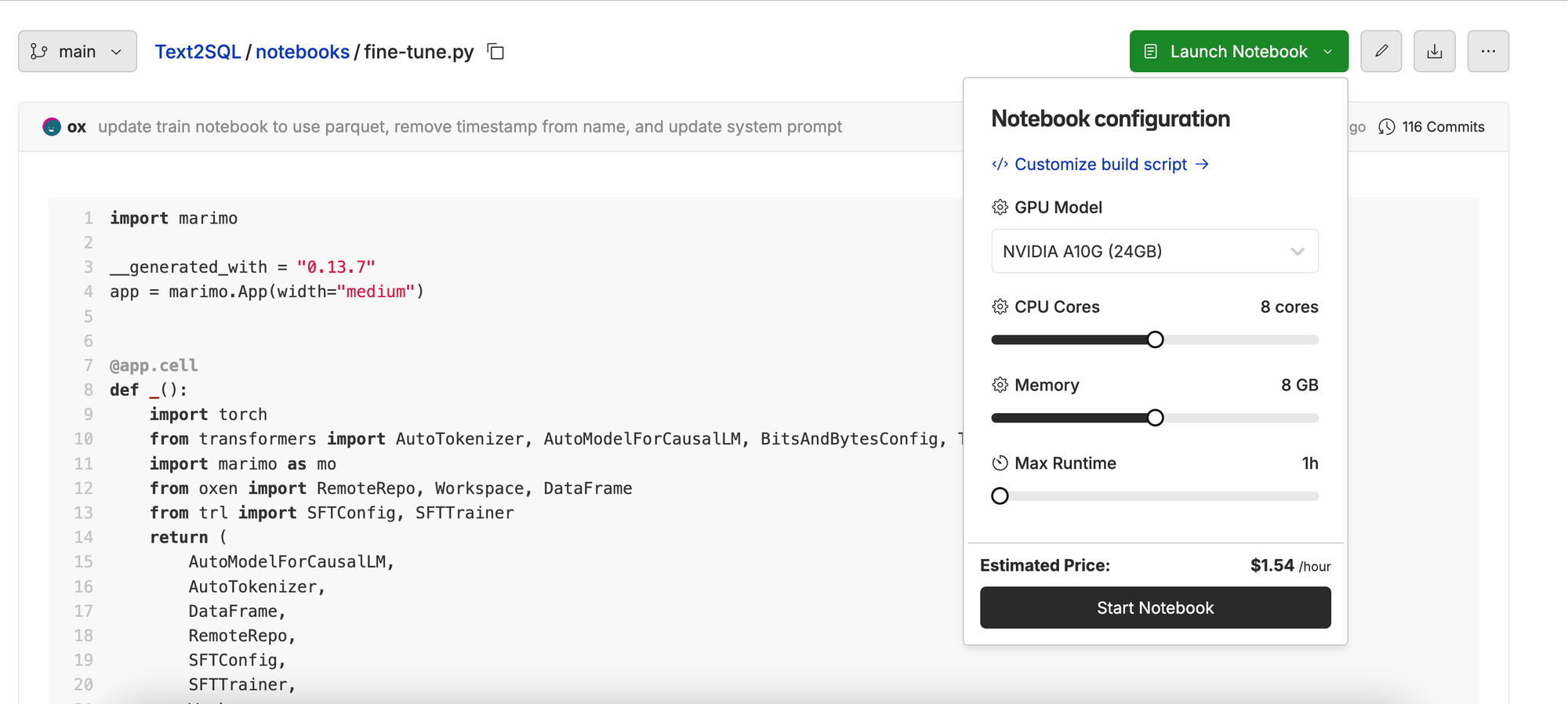 https://www.oxen.ai/ox/Text2SQL/file/main/notebooks/fine-tune.py