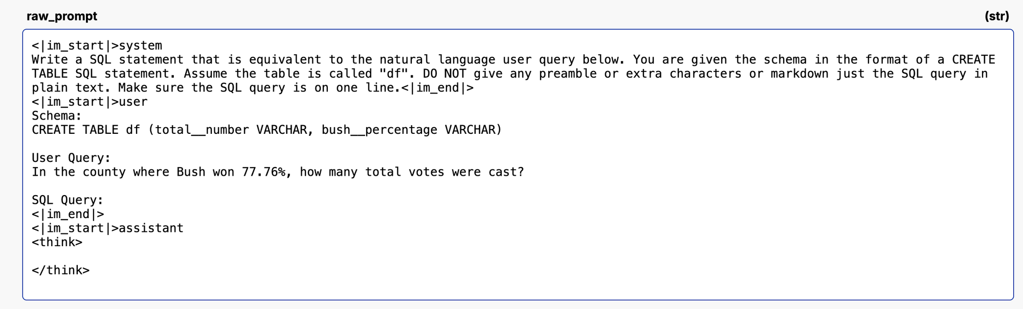 Our initial implementation of Text2SQL was a simple prompt and API call to OpenAI’s gpt-4o-2024-08-06. The prompt behind the scenes is pretty simple: