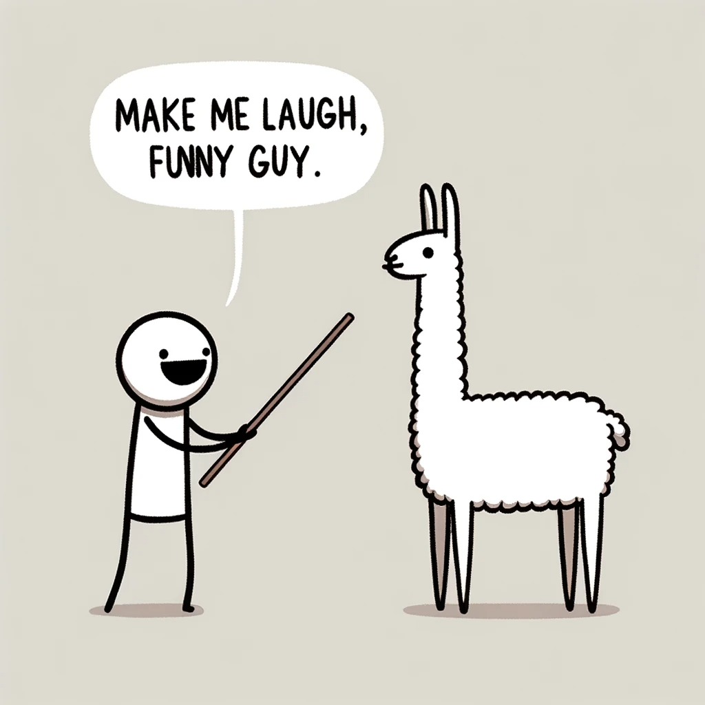 Let's start by poking Llama-2 with a stick to see if it is funny or not.