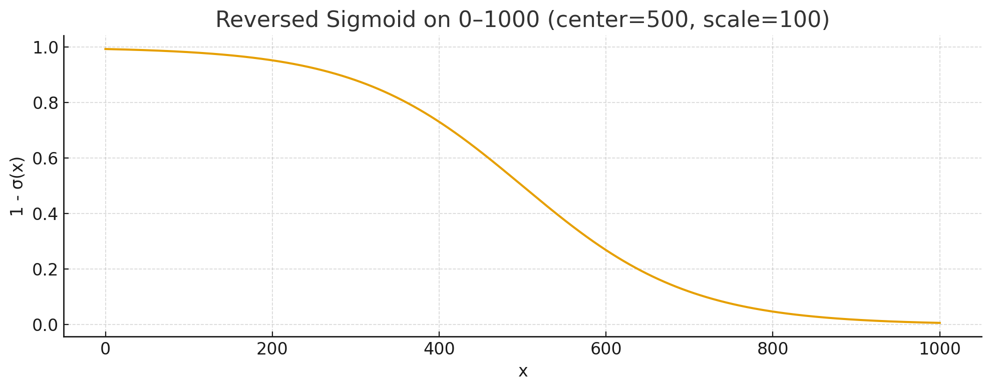 In our case, we can use the sigmoid to focus the model on the details at the start and end of the generation. Most of the time will be on refining the high noise removal, then it will quickly drop down in the middle steps, and finally focus on removing the low noise.