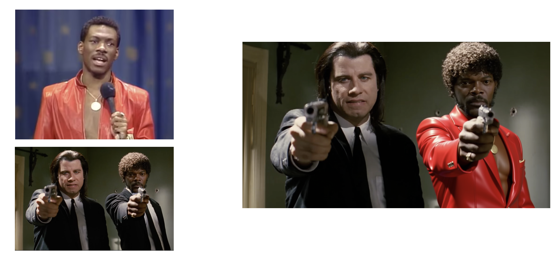 For example, this is what it looks like if you use Qwen-Image-Edit to "Place the red jacket on the man on the right" with Eddie Murphy as a reference image.