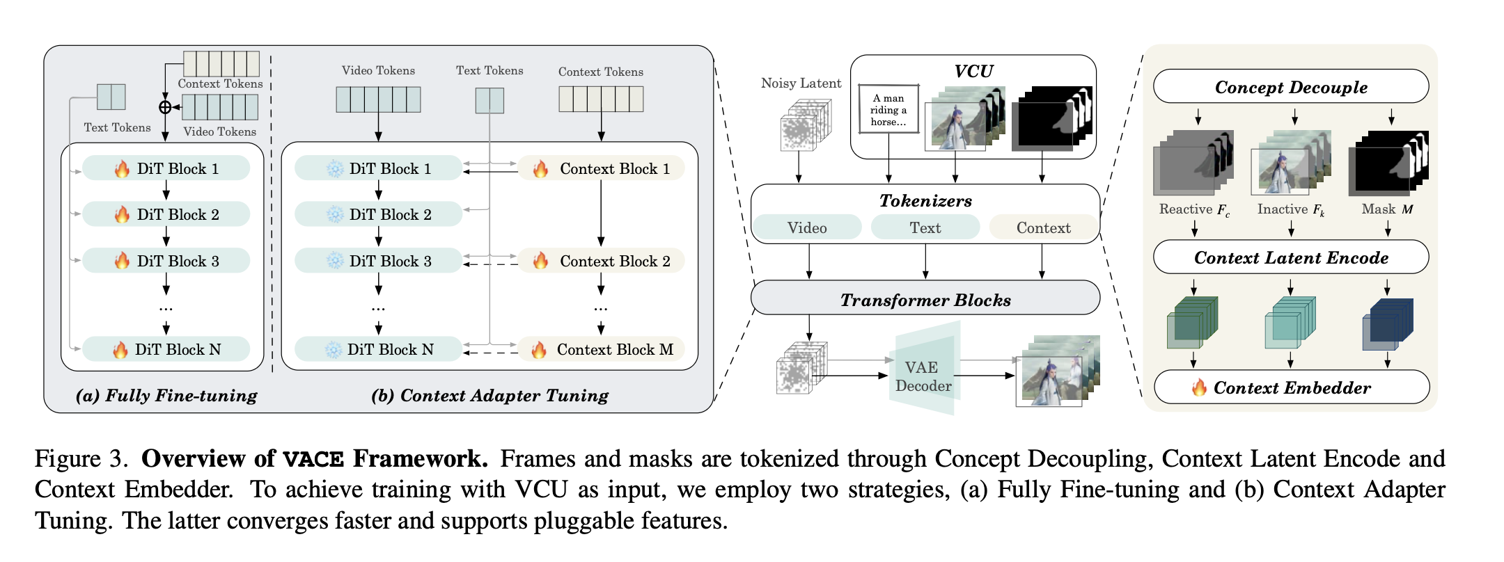 The concept adapter fine-tuning allowed them to train and compose different capabilities into the model. Each task is fed through the model through "context tokens" and context blocks that are separate from the model DiT Blocks. Interestingly enough, training the concept adapters trains faster and gave them better performance than combining the video and context tokens and performing a full fine-tuning. The nice thing about this approach is it allows you to quickly add new capabilities through the context block weights themselves.
