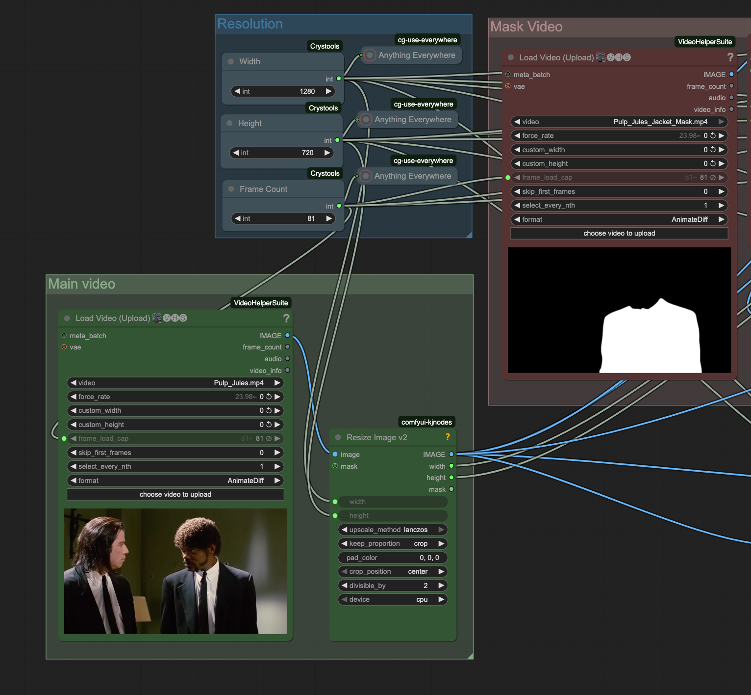 Both the masked frames and the pose estimation frames will be encoded into the WAN 2.1 VACE context to give the model guidance on what pixels of the video to focus on replacing.