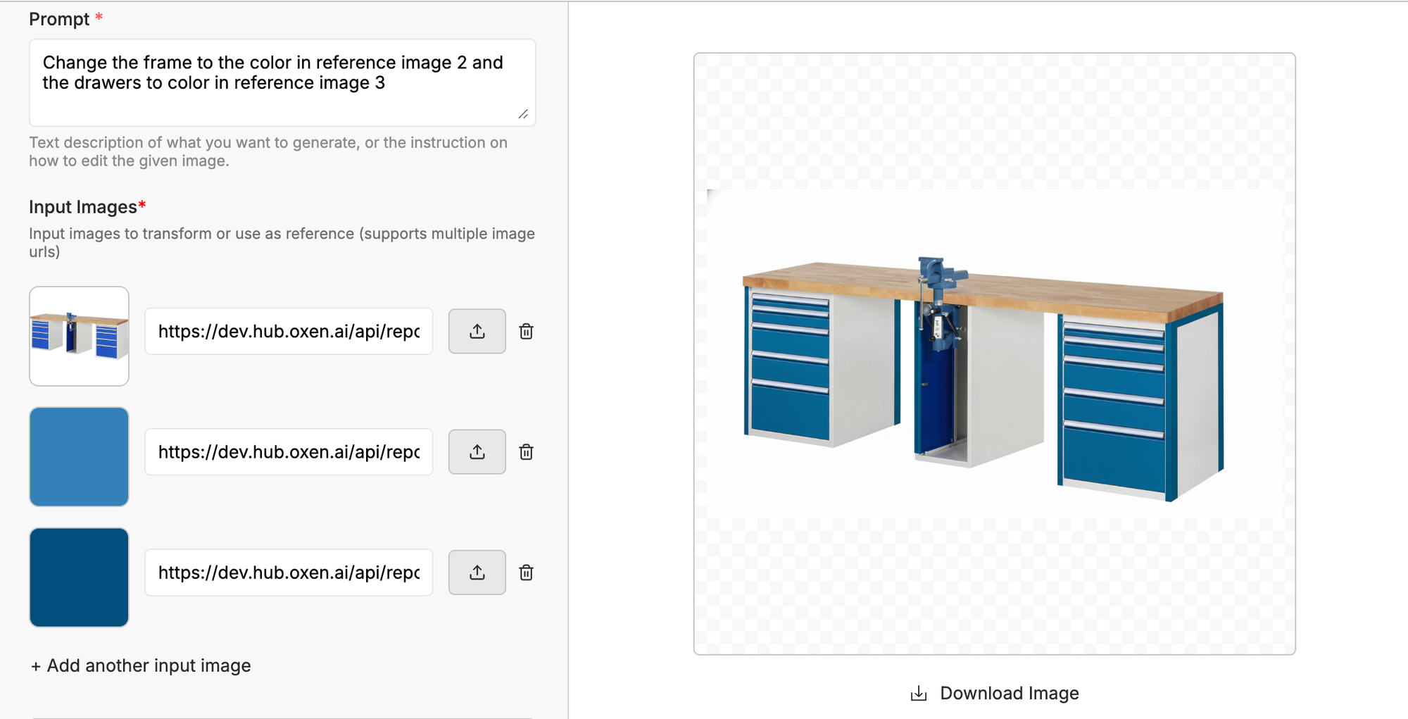 Recently, we had an AI-native consulting firm named AlliumAI come to us because needed to generate a catalog of furniture. The product catalogue had a variety of items such as desks and cabinets and different color swatches that needed to be used for these items.