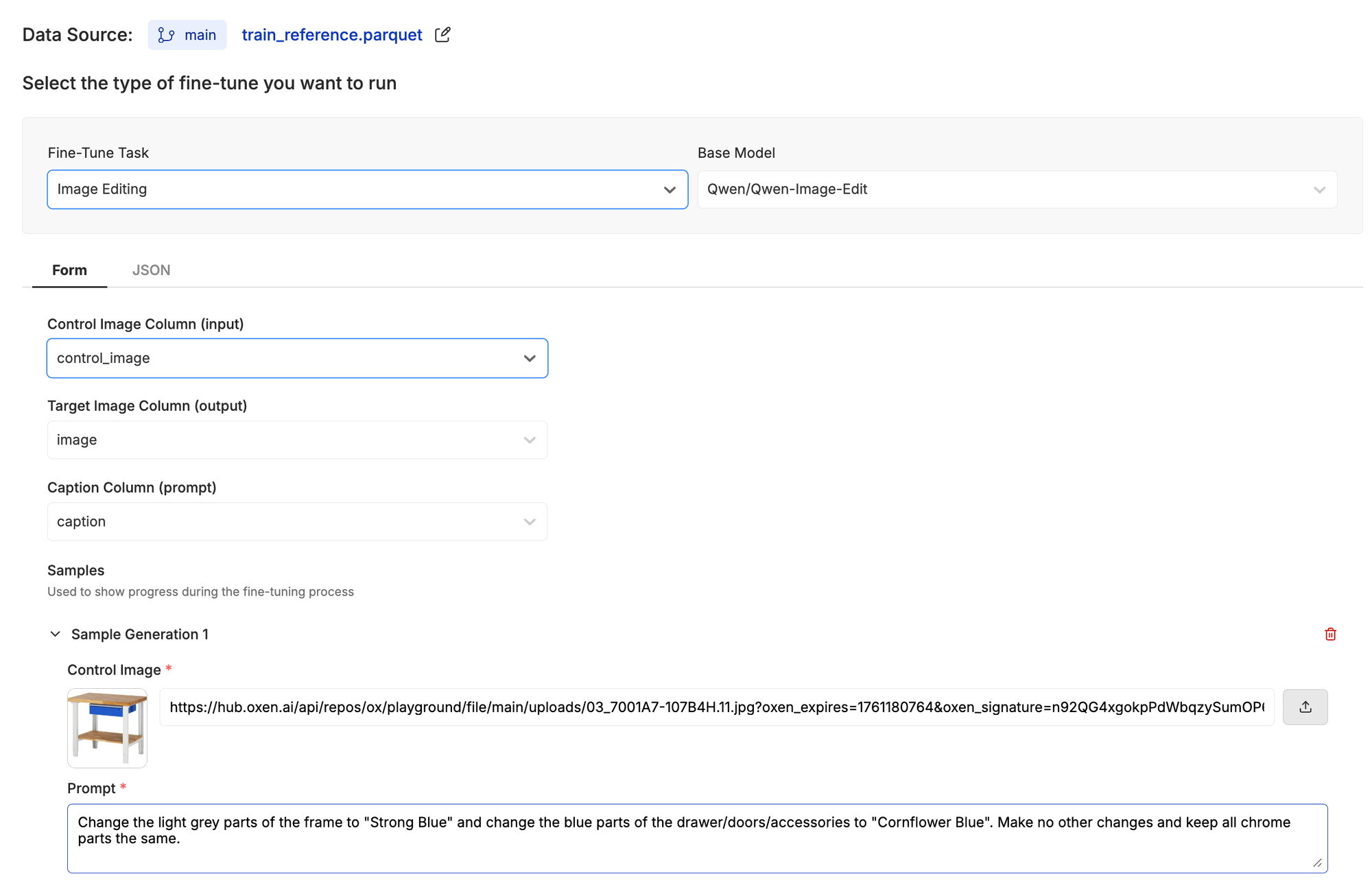 Once we got this dataset into Oxen, we started a fine-tune with a single click.