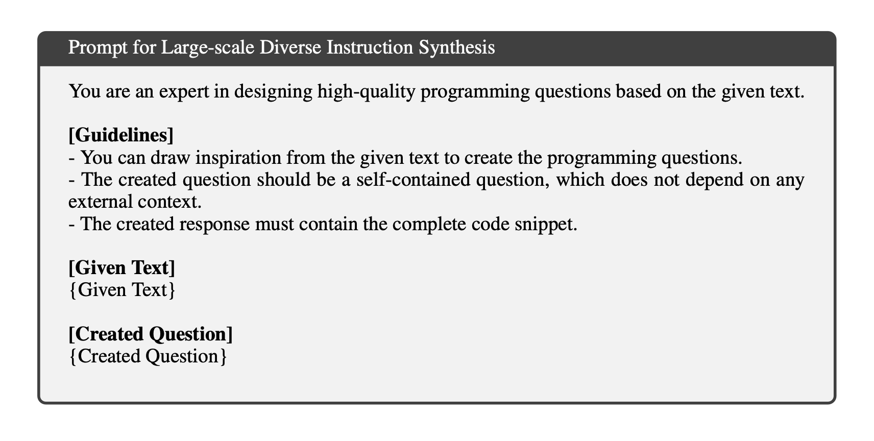 - The created question should be a self-contained question, which does not depend on any