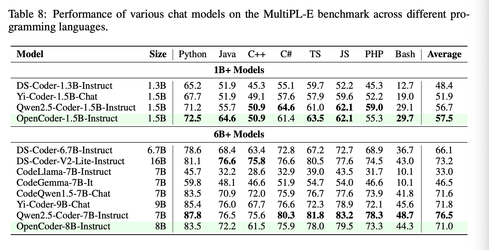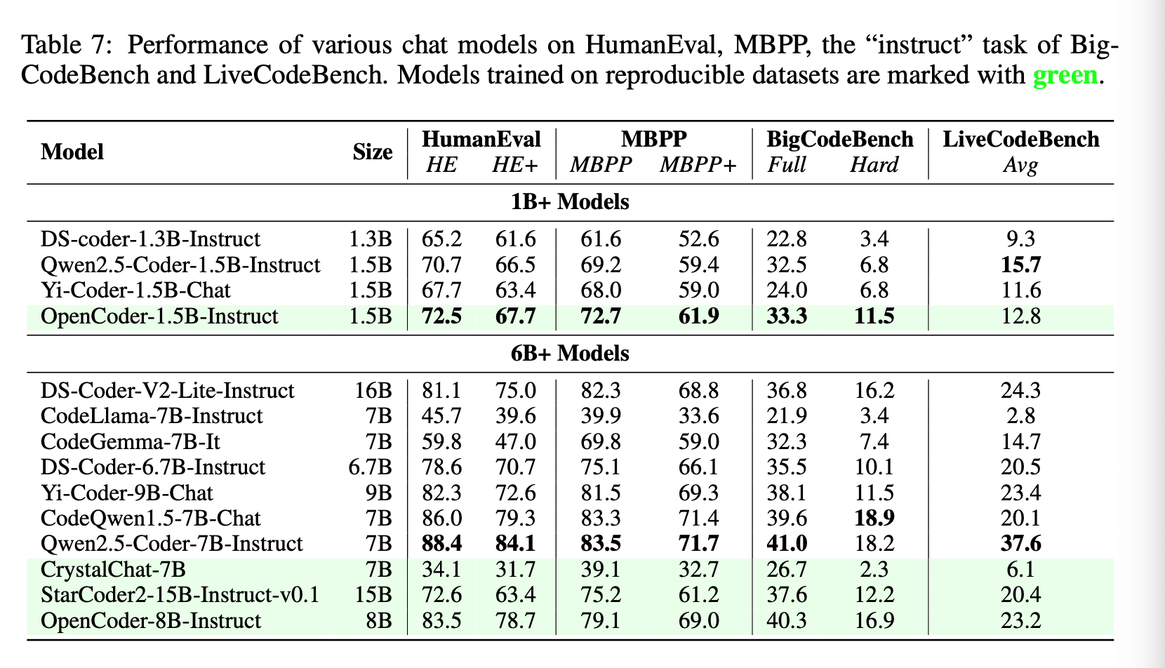 Then they evaluate the instruct models on the same benchmarks and a few more including LiveCodeBench and MultiPL-E.